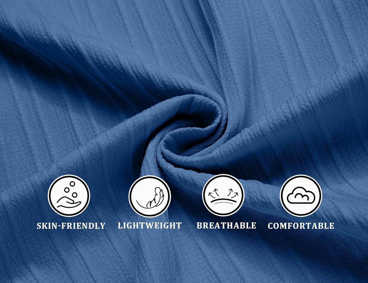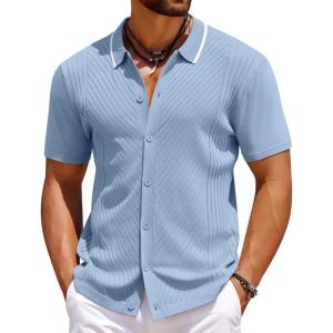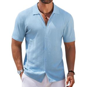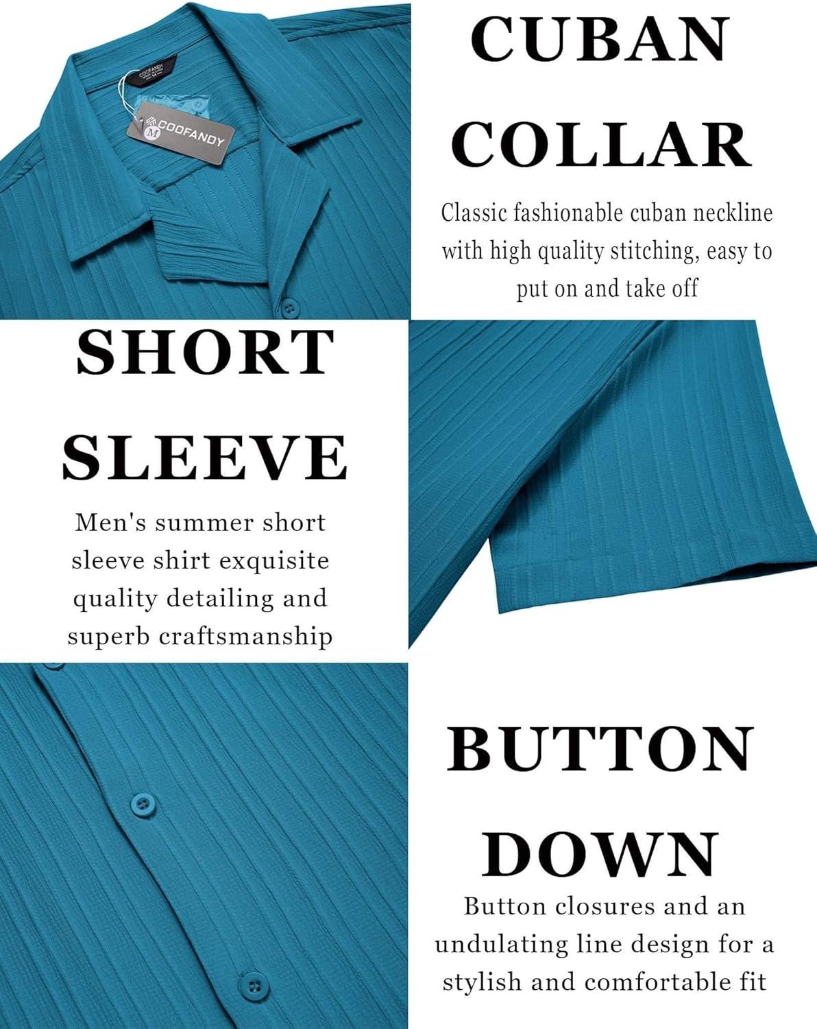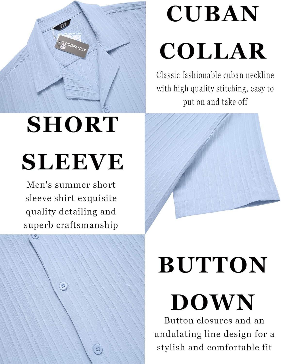 COOFANDY Men’s Casual Button Down Shirts Short Sleeve Textured Summer Beach Shirts(Lake Blue)