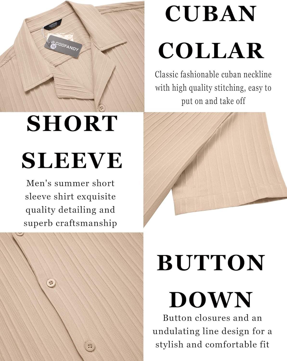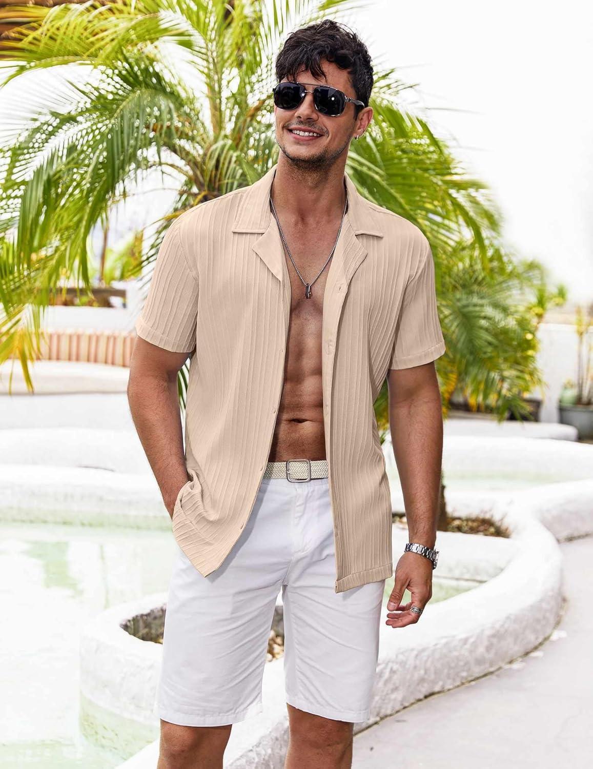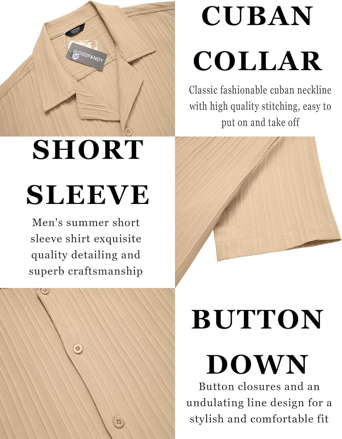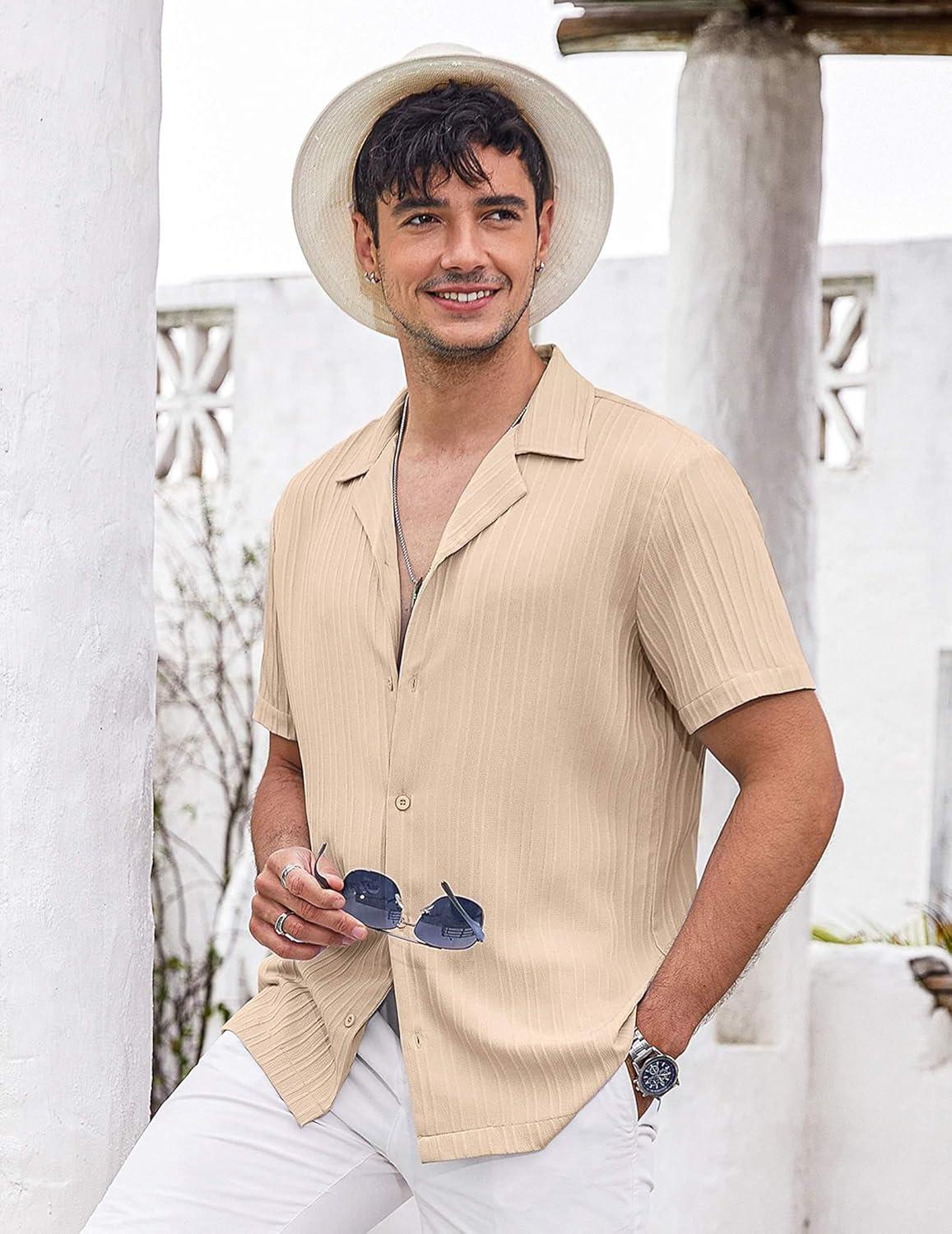 COOFANDY Men’s Casual Button Down Shirts Short Sleeve Regular Fit Fashion Camp Beach Shirts Tops(Beige)