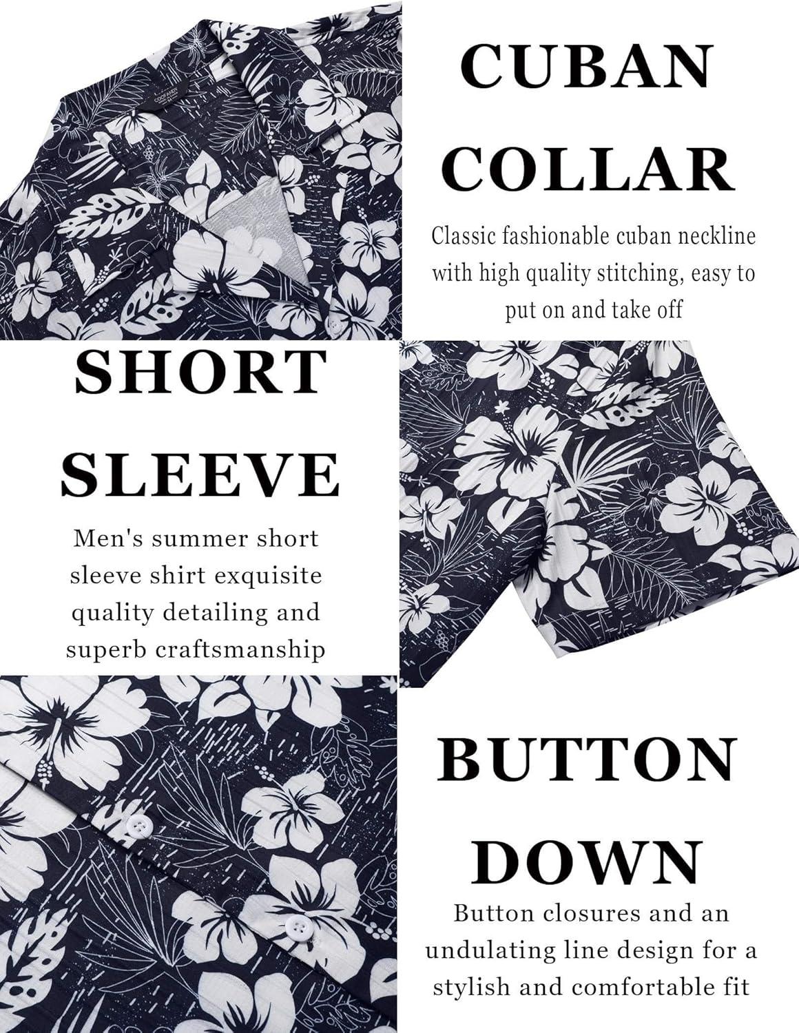 COOFANDY Men’s Casual Button Down Shirts Short Sleeve Regular Fit Fashion Camp Beach Shirts Tops(Black)