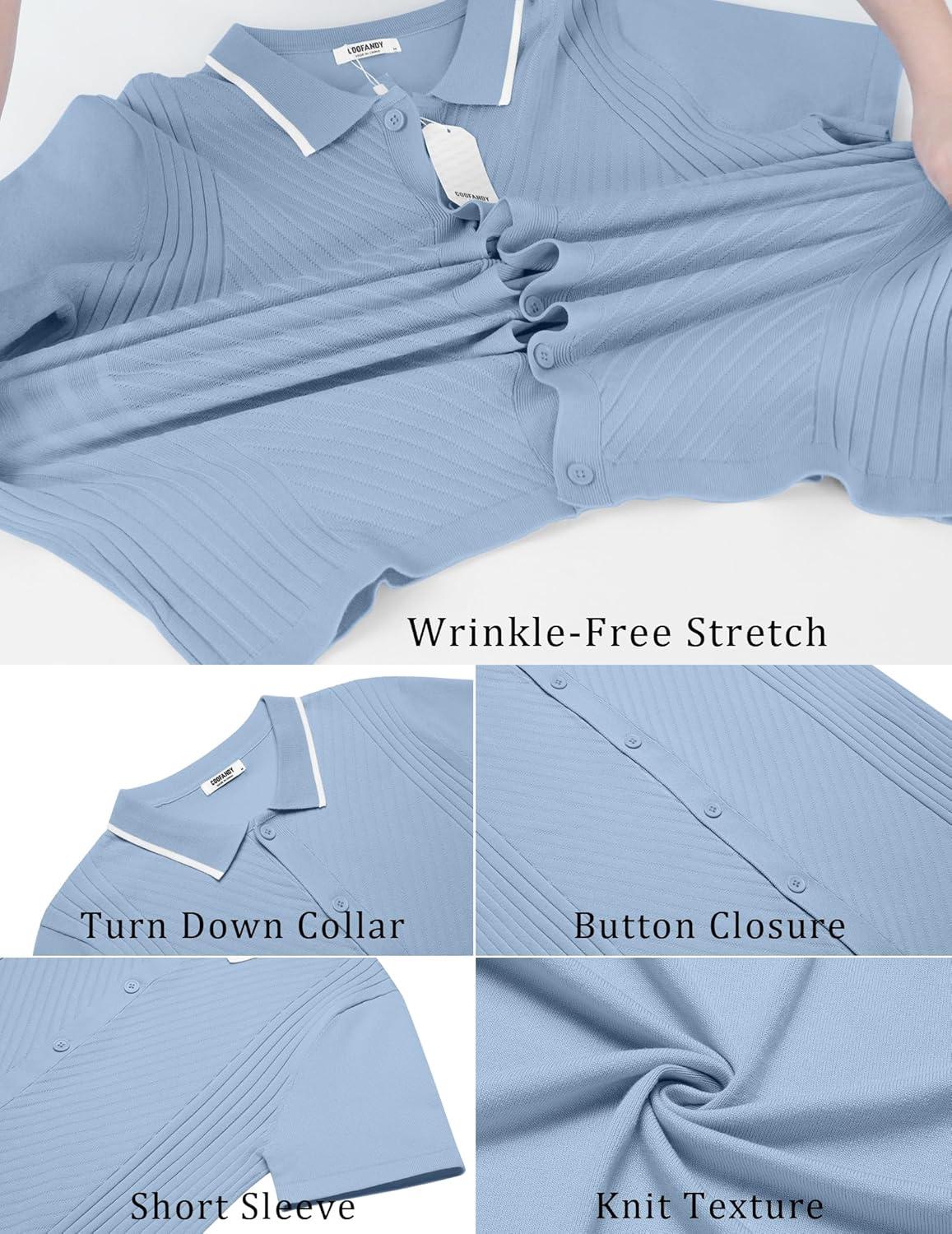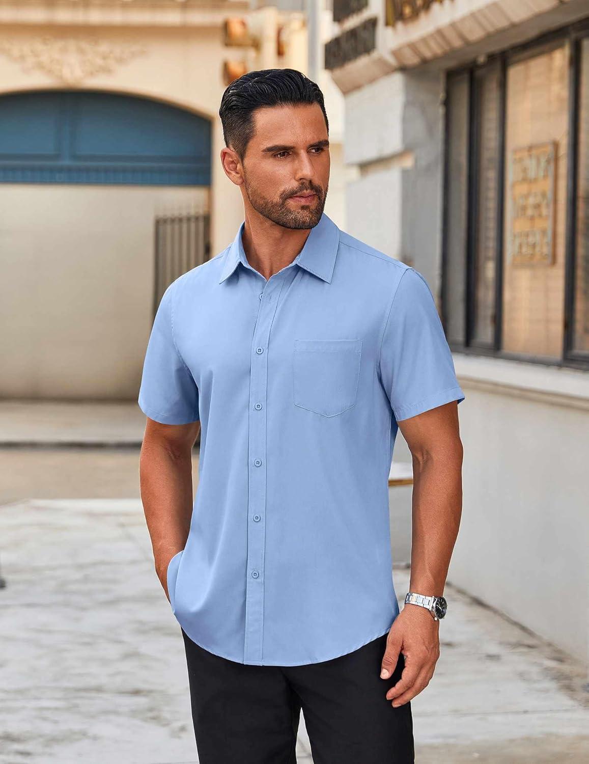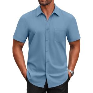 COOFANDY Mens Short Sleeve Button Down Shirt Lightweight Wrinkle Free Untucked Dress Shirts(Clear Blue)