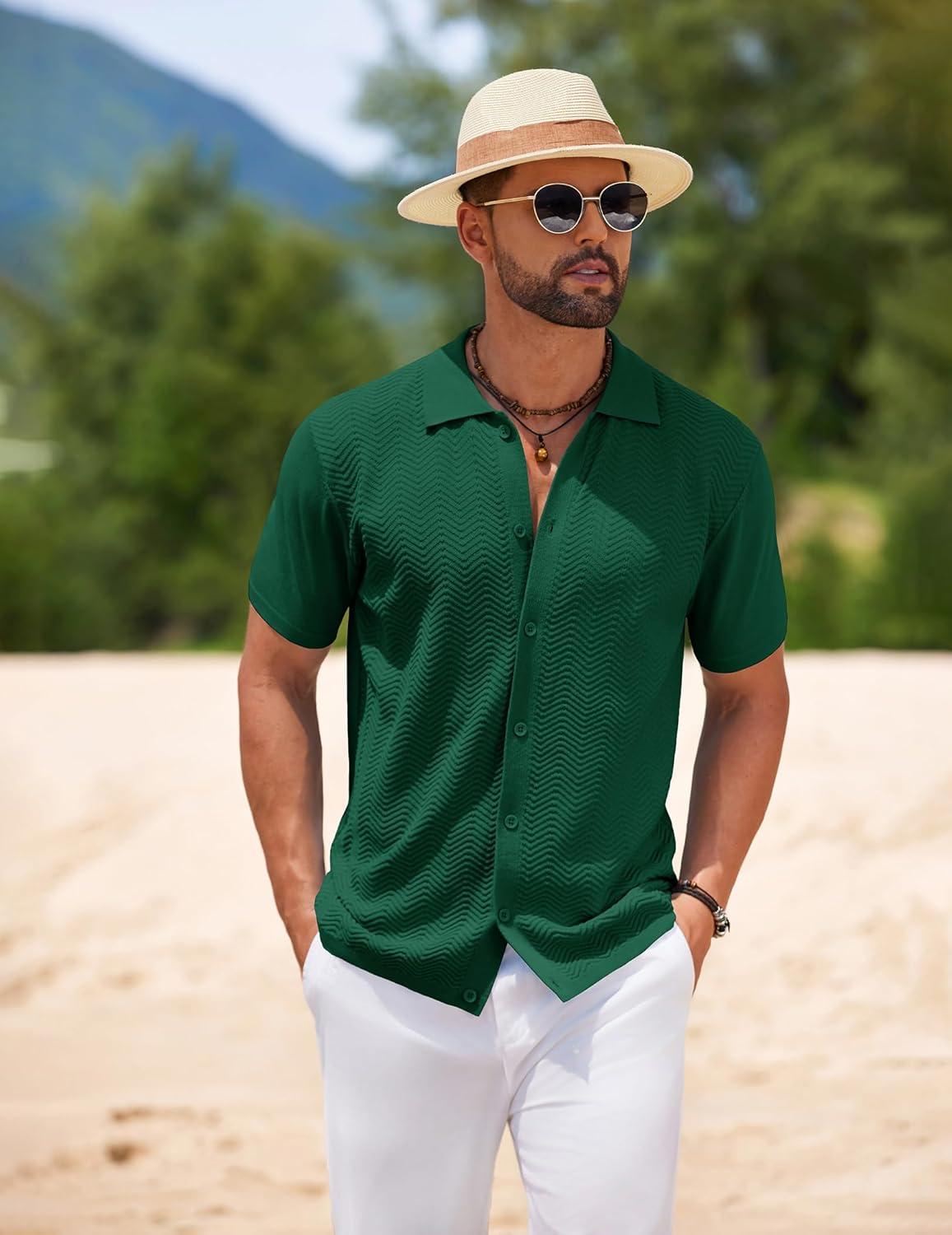 COOFANDY Men’s Casual Button Down Shirts Short Sleeve Regular Fit Fashion Camp Beach Shirts Tops(Green)