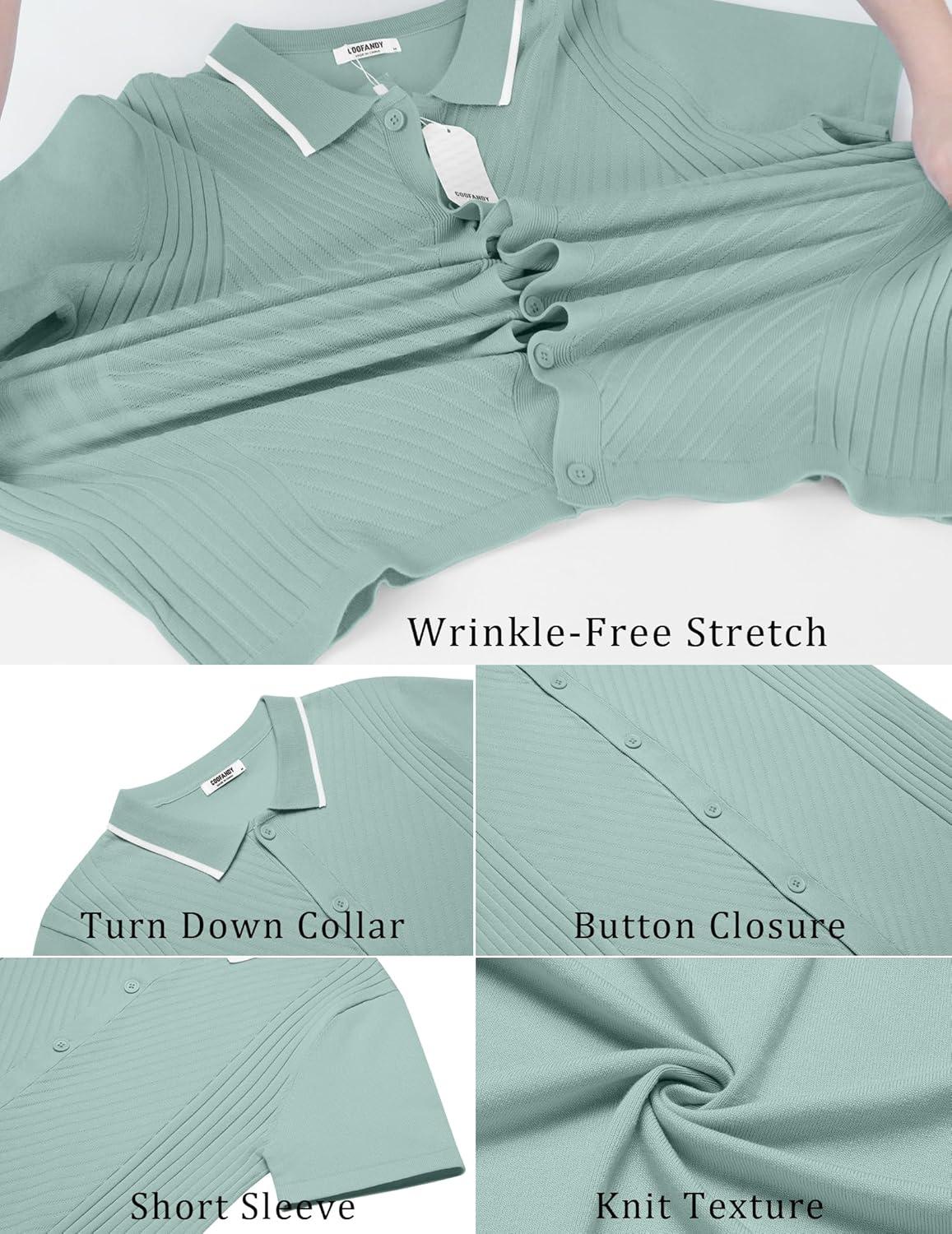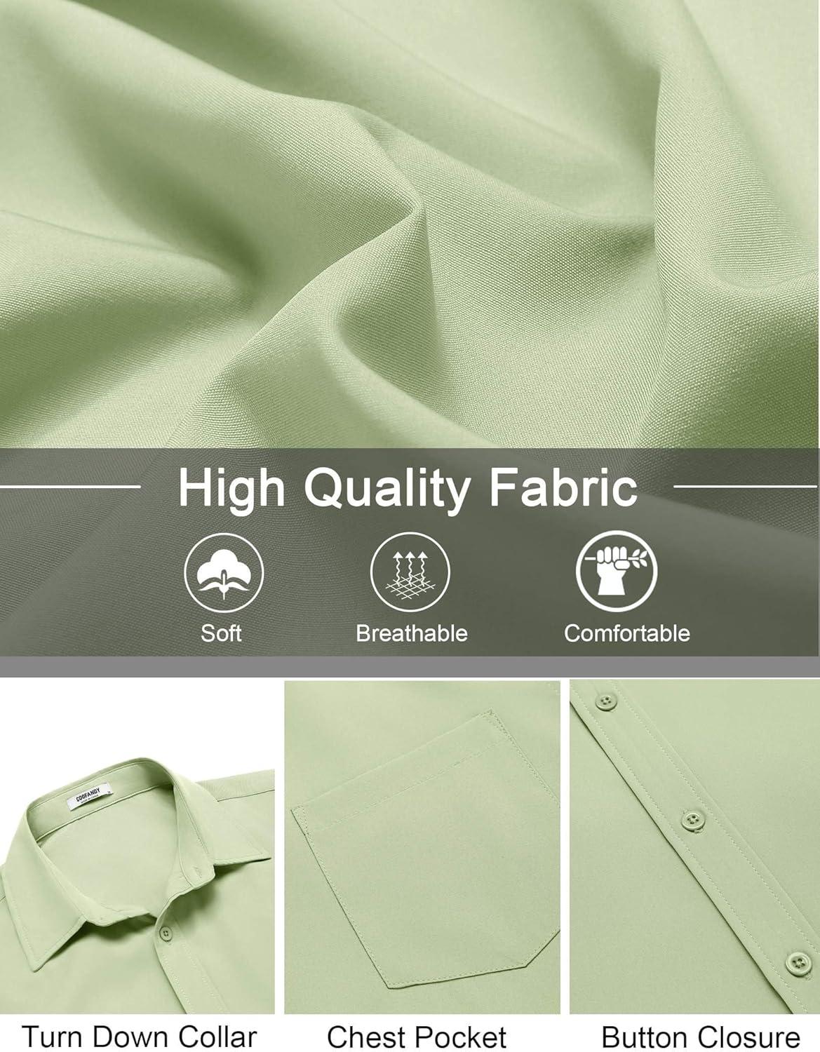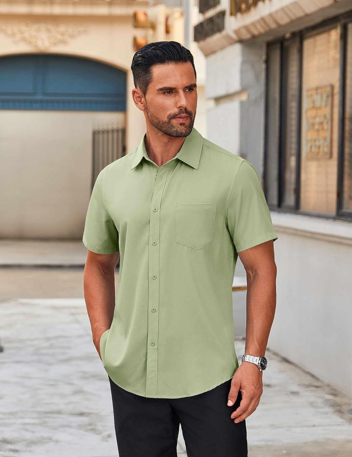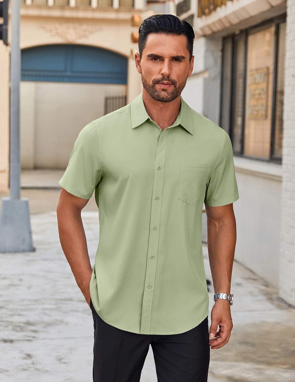 COOFANDY Mens Short Sleeve Button Down Shirt Lightweight Wrinkle Free Untucked Dress Shirts(Light Green)