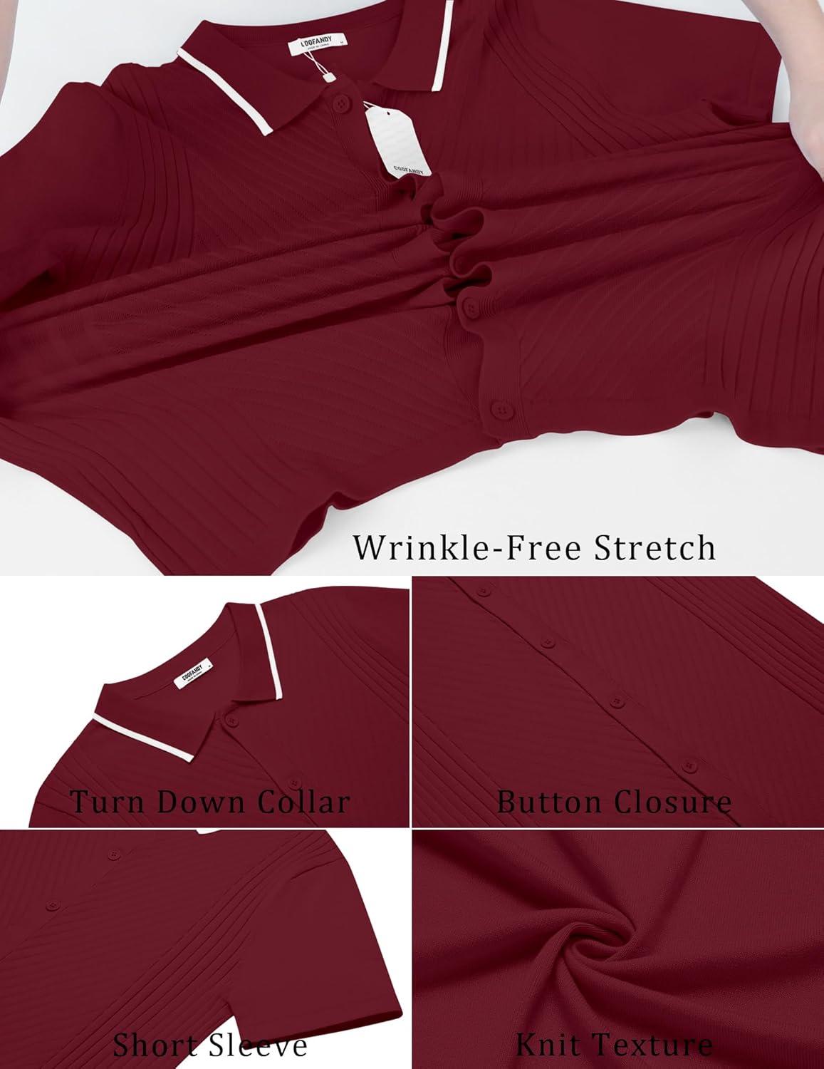 COOFANDY Mens Short Sleeve Button Down Shirt Lightweight Wrinkle Free Untucked Dress Shirts(Dark Red)