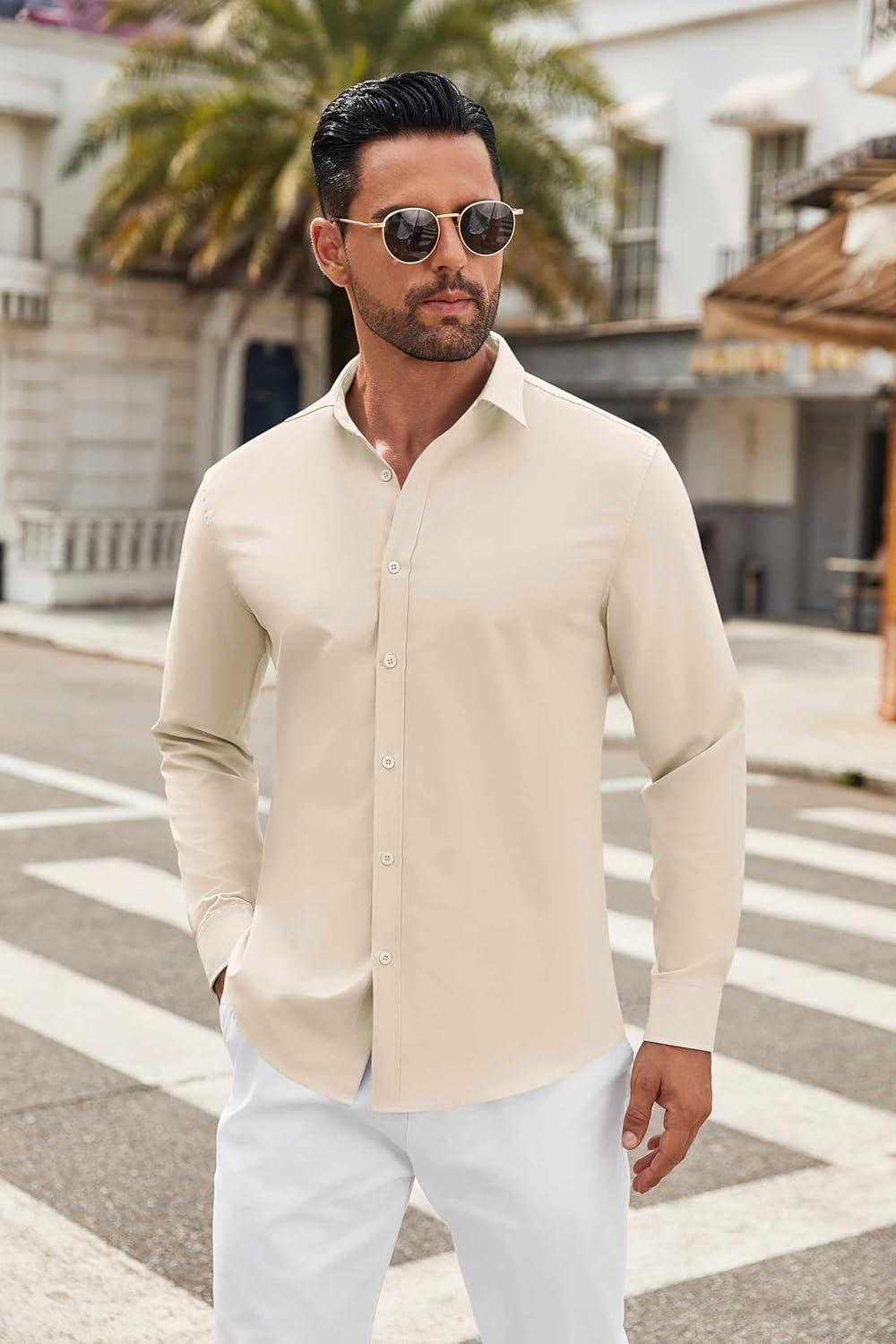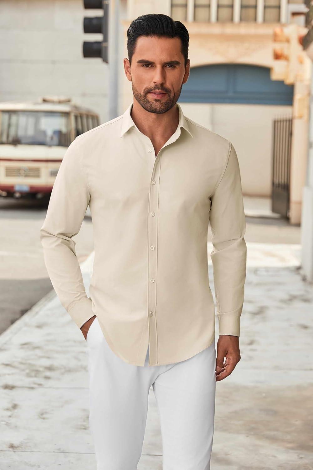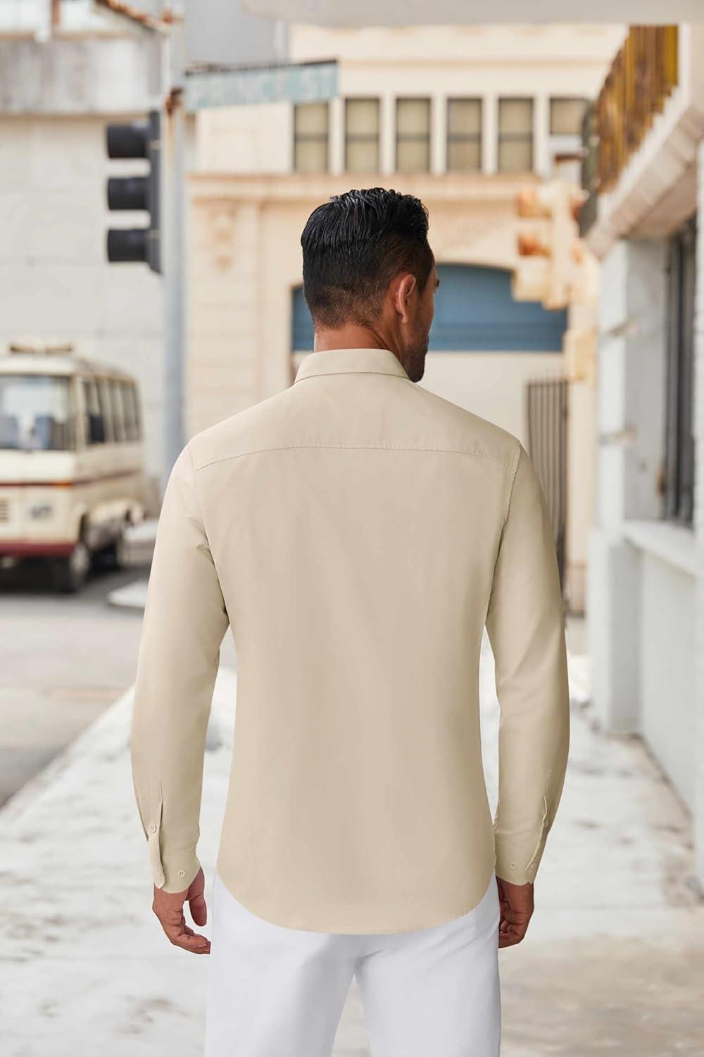 COOFANDY Men’s Casual Button Down Shirt Long Sleeve Untucked Chambray Shirt Wrinkle Free Dress Shirts(Sesame)