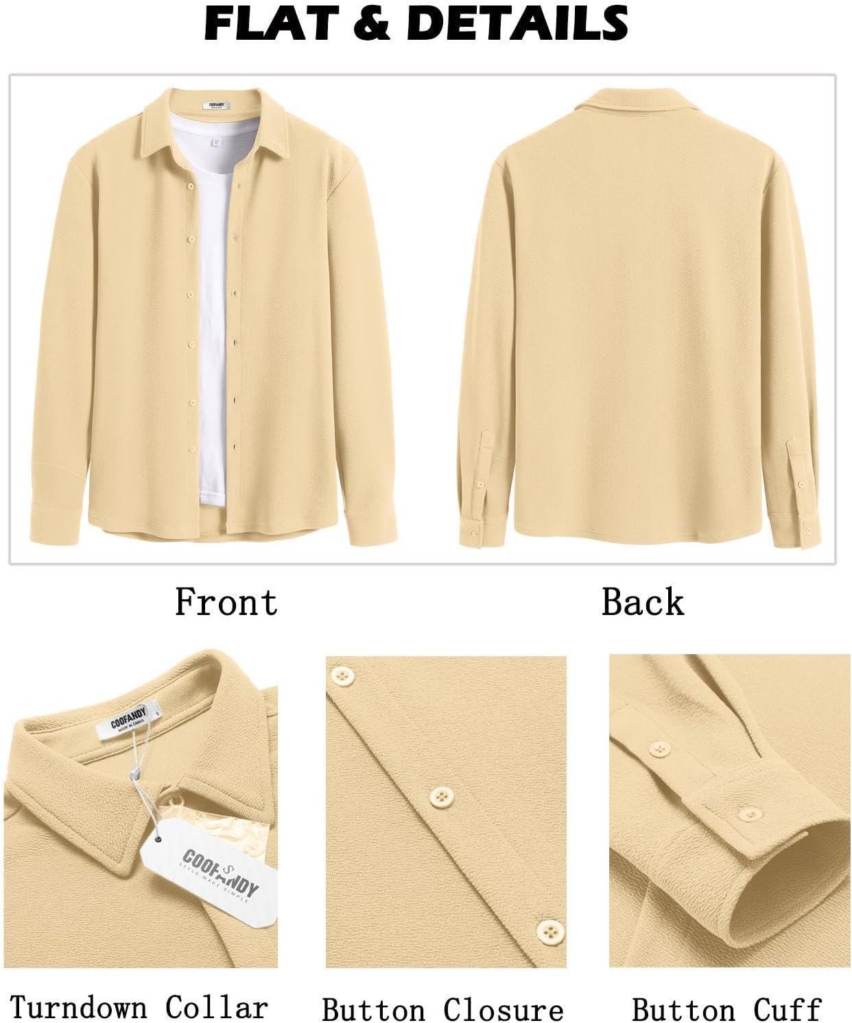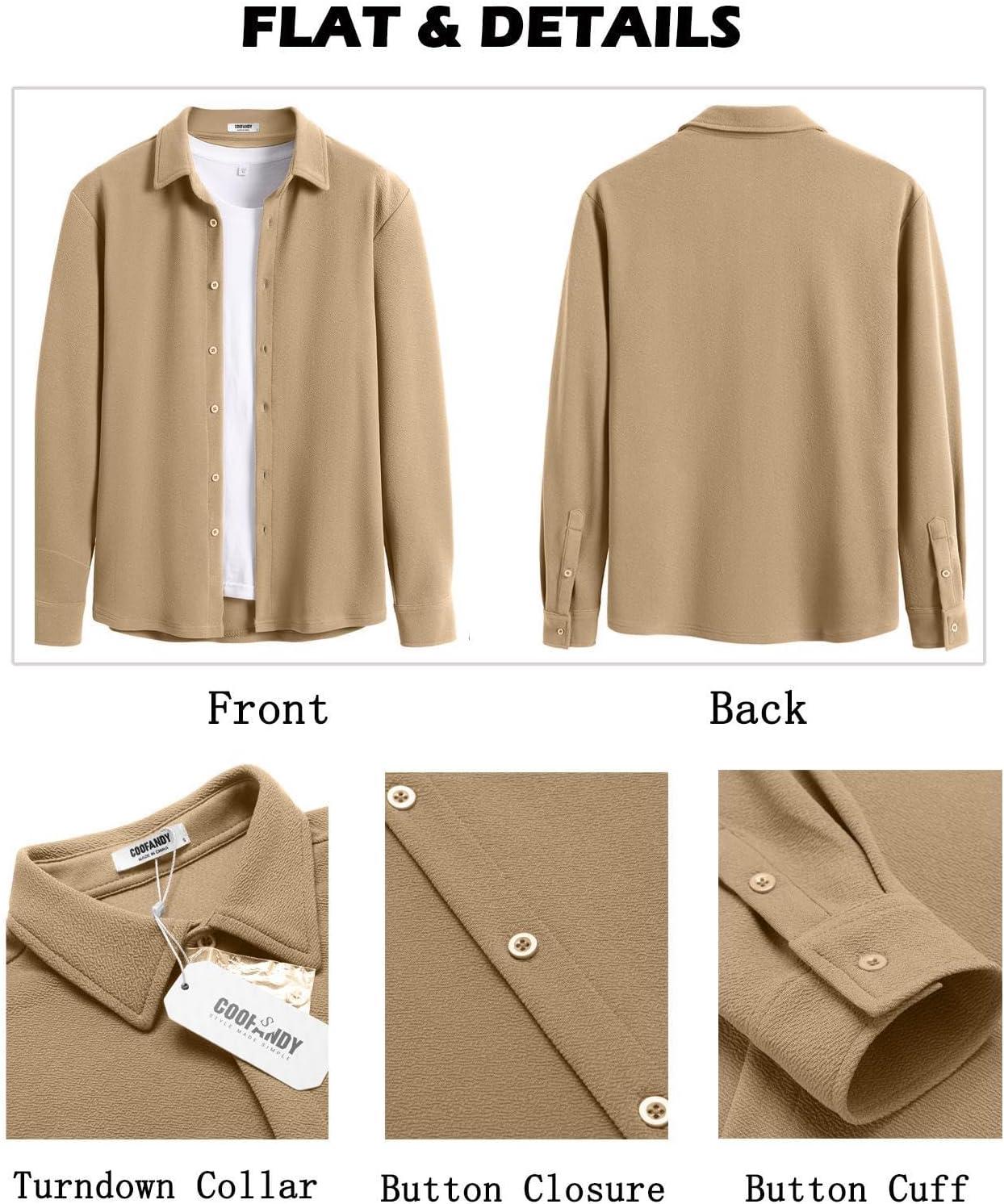 COOFANDY Men’s Casual Button Down Shirt Long Sleeve Wrinkle Free Shirts Loose fit Shirt Textured Stretch Shirts with Pocket(Khaki)