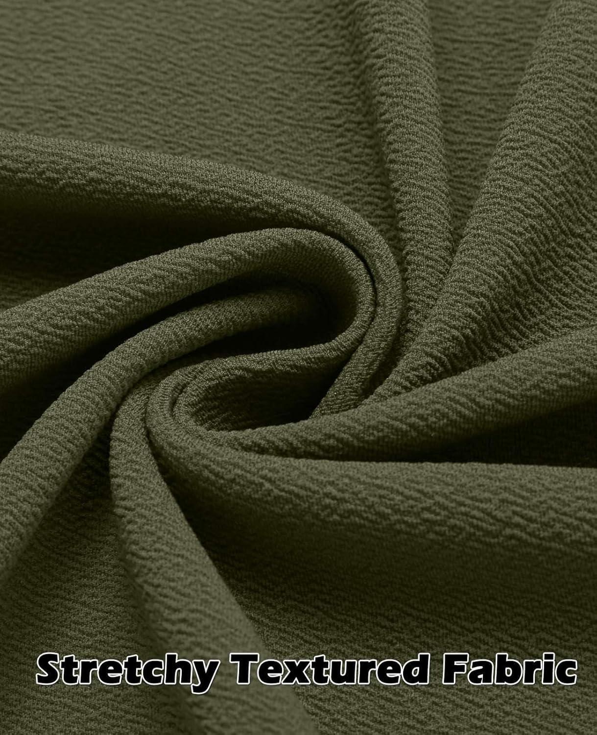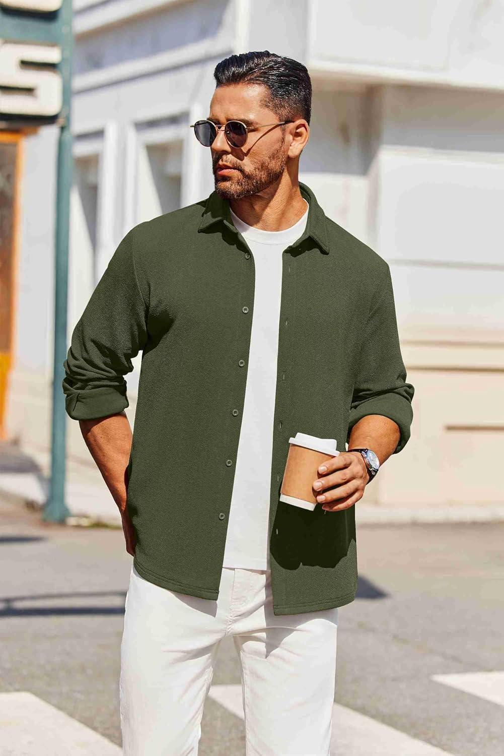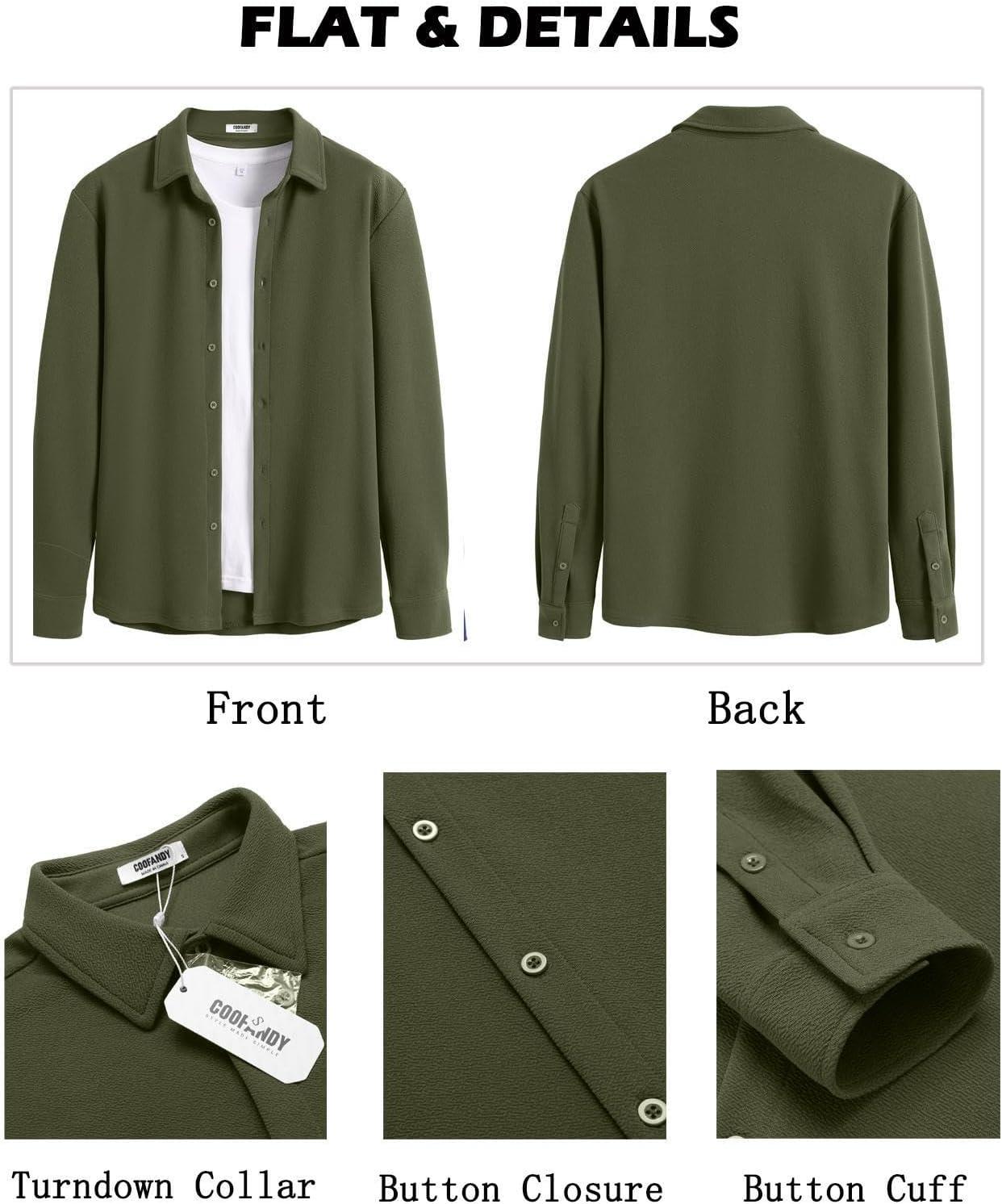 COOFANDY Men’s Casual Button Down Shirt Long Sleeve Wrinkle Free Shirts Loose fit Shirt Textured Stretch Shirts with Pocket(Army Green)