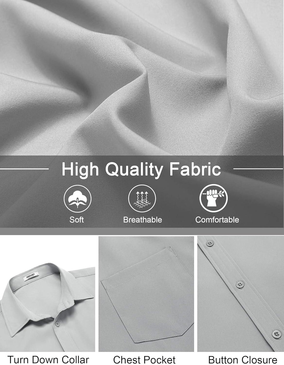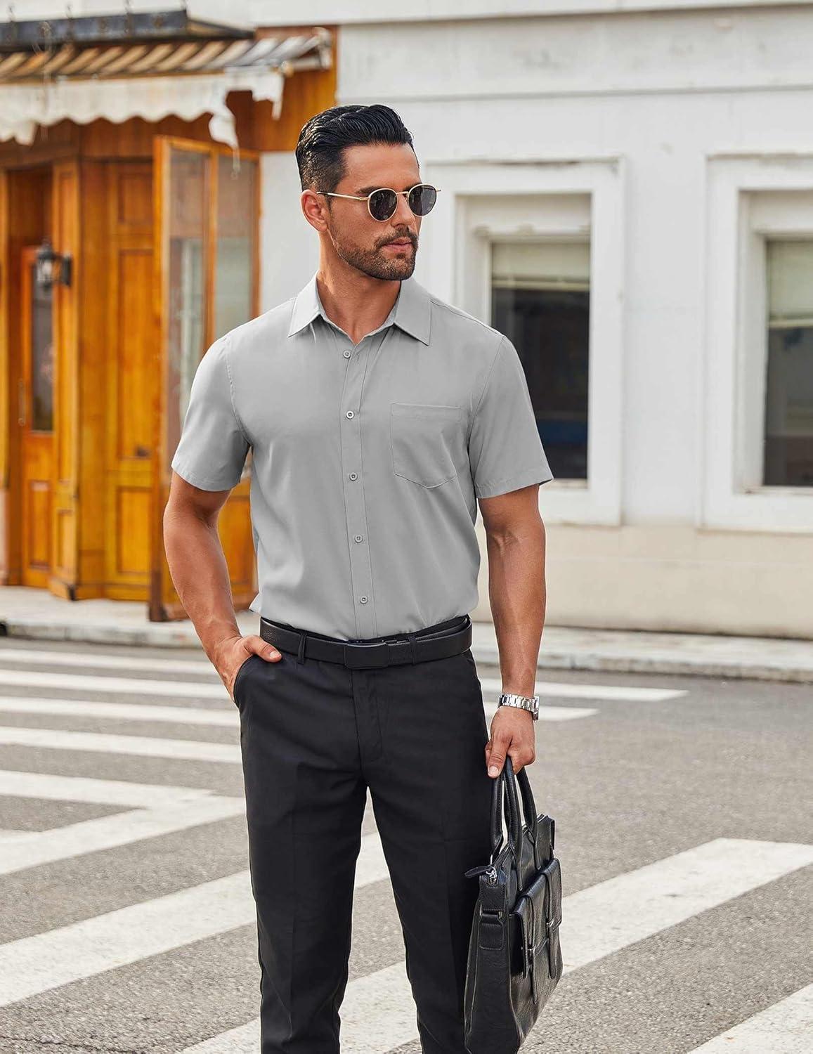 COOFANDY Mens Wrinkle Free Short Sleeve Dress Shirts Button Up Fitted Casual Summer Shirts Light Grey