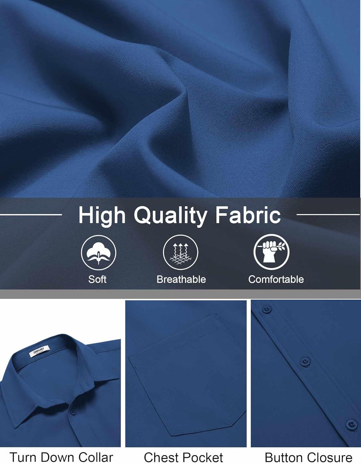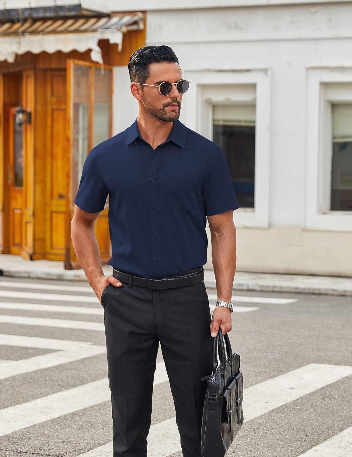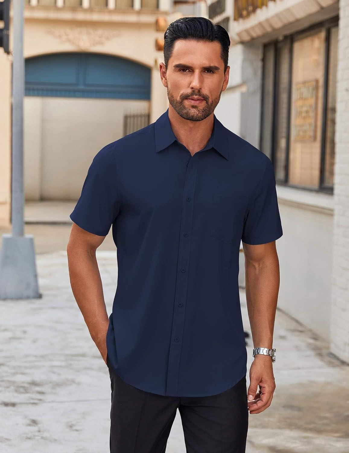 COOFANDY Mens Short Sleeve Button Down Shirts Lightweight Stain Shield Business Casual Dress Shirt Wrinkle Free(Dark Blue)