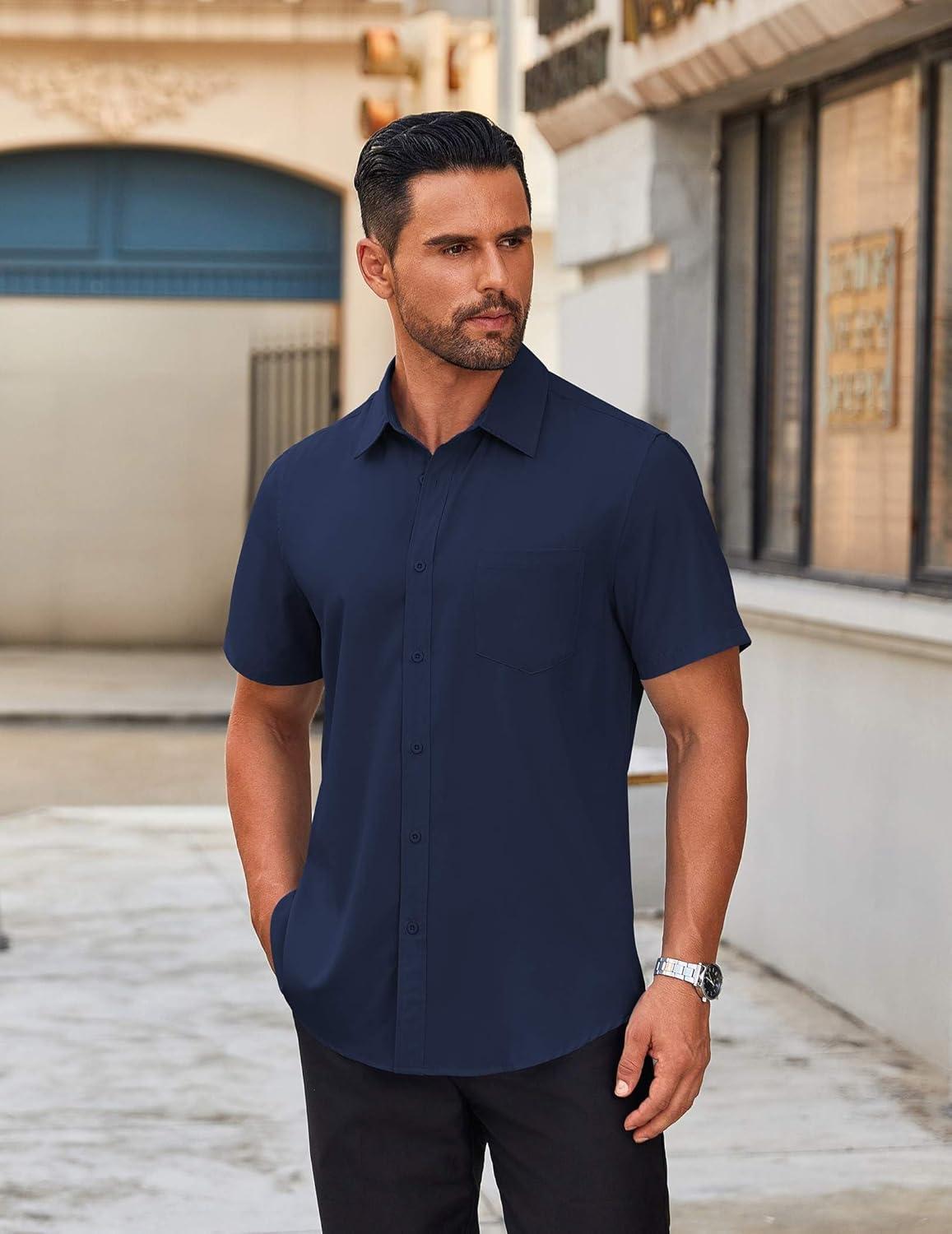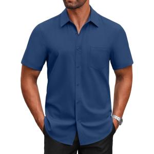 COOFANDY Mens Short Sleeve Button Down Shirt Lightweight Wrinkle Free Untucked Dress Shirts(Dark Blue)