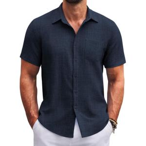 COOFANDY Men’s Casual Button Down Shirts Short Sleeve Summer Untucked Dress Shirts(Navy Blue)