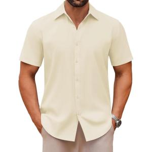 COOFANDY Men’s Casual Button Down Shirts Short Sleeve Summer Untucked Dress Shirts(Beige)