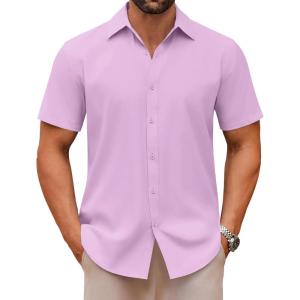 COOFANDY Men’s Casual Button Down Shirts Short Sleeve Summer Untucked Dress Shirts(Lavender)