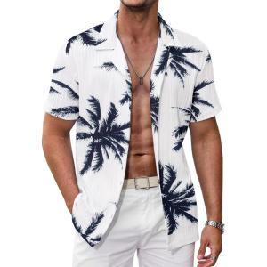 COOFANDY Mens Hawaiian Shirt Short Sleeve Buttoon Down Shirts Casual Tropical Floral Summer Linen Shirts(P- Palm Leaf)