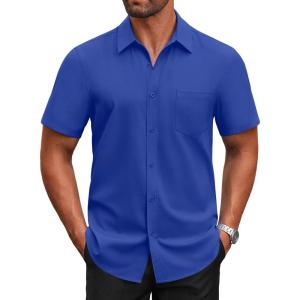 COOFANDY Mens Short Sleeve Button Down Shirts Casual Dress Shirts for Men Summer Untucked Shirts with Pocket(Blue)