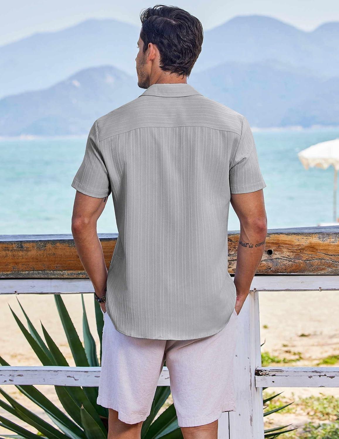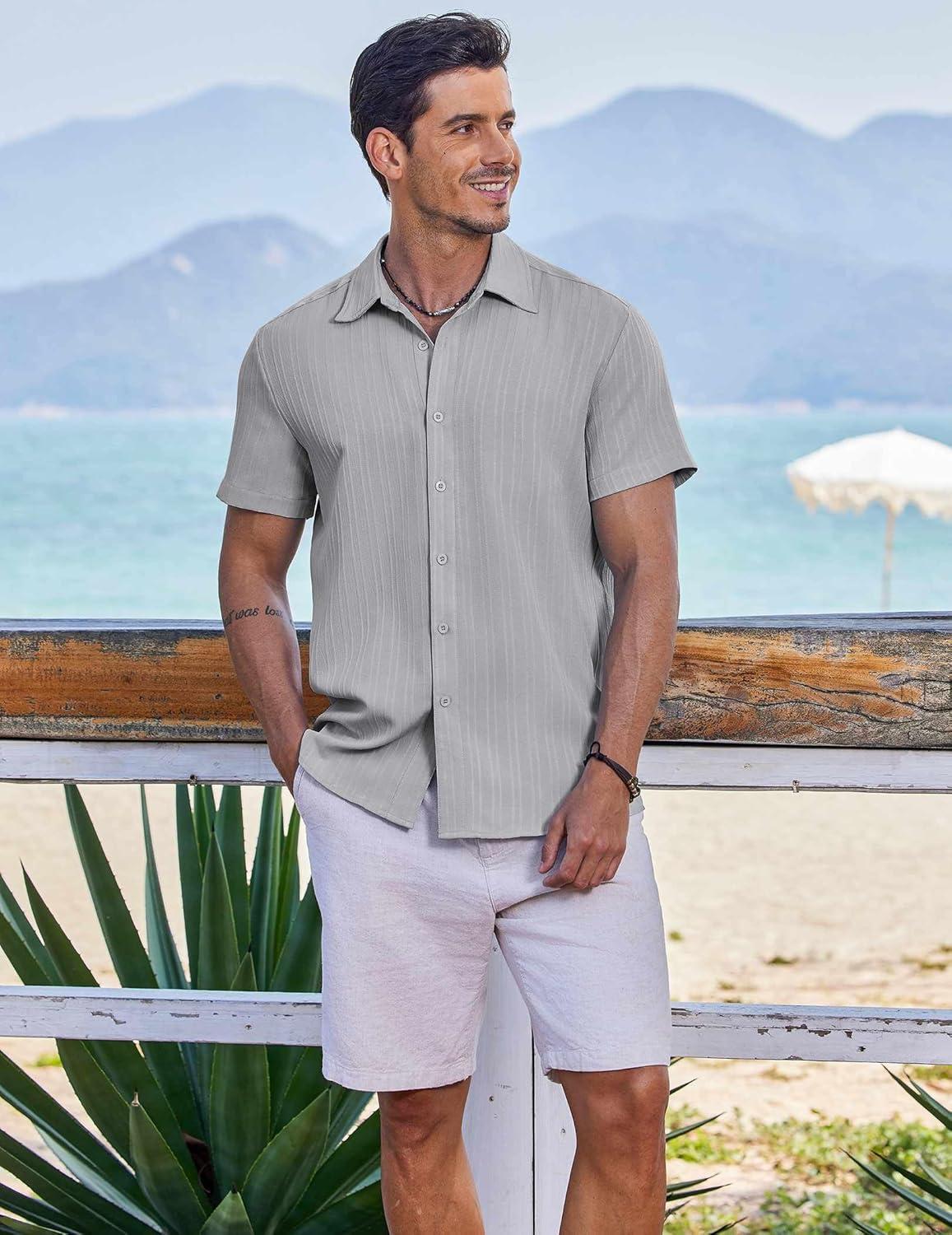 COOFANDY Men’s Button Down Shirts Short Sleeve Casual Summer Beach Shirts Vacation Wedding Shirts(Grey)