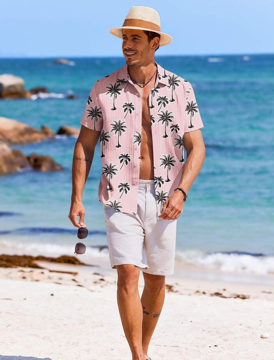 COOFANDY Men’s Casual Button Down Shirts Short Sleeve Regular Fit Fashion Camp Beach Shirts Tops(Misty Rose)