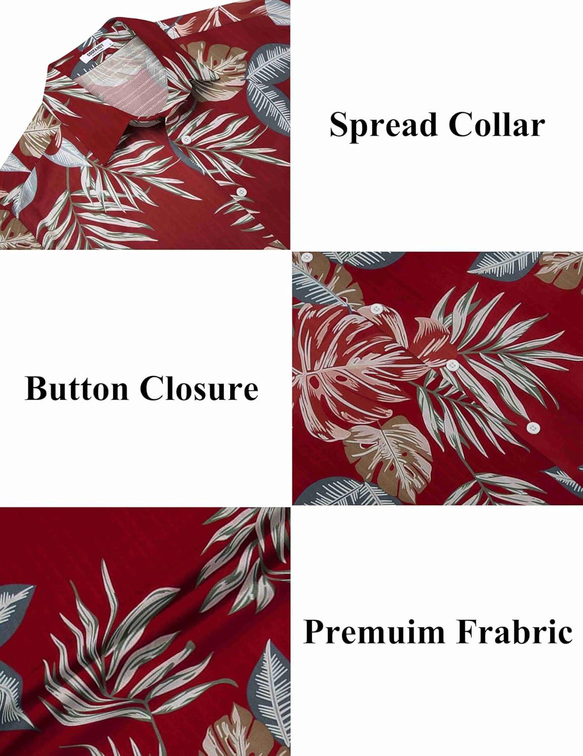COOFANDY Men’s Casual Button Down Shirts Short Sleeve Regular Fit Fashion Camp Beach Shirts Tops(Red)