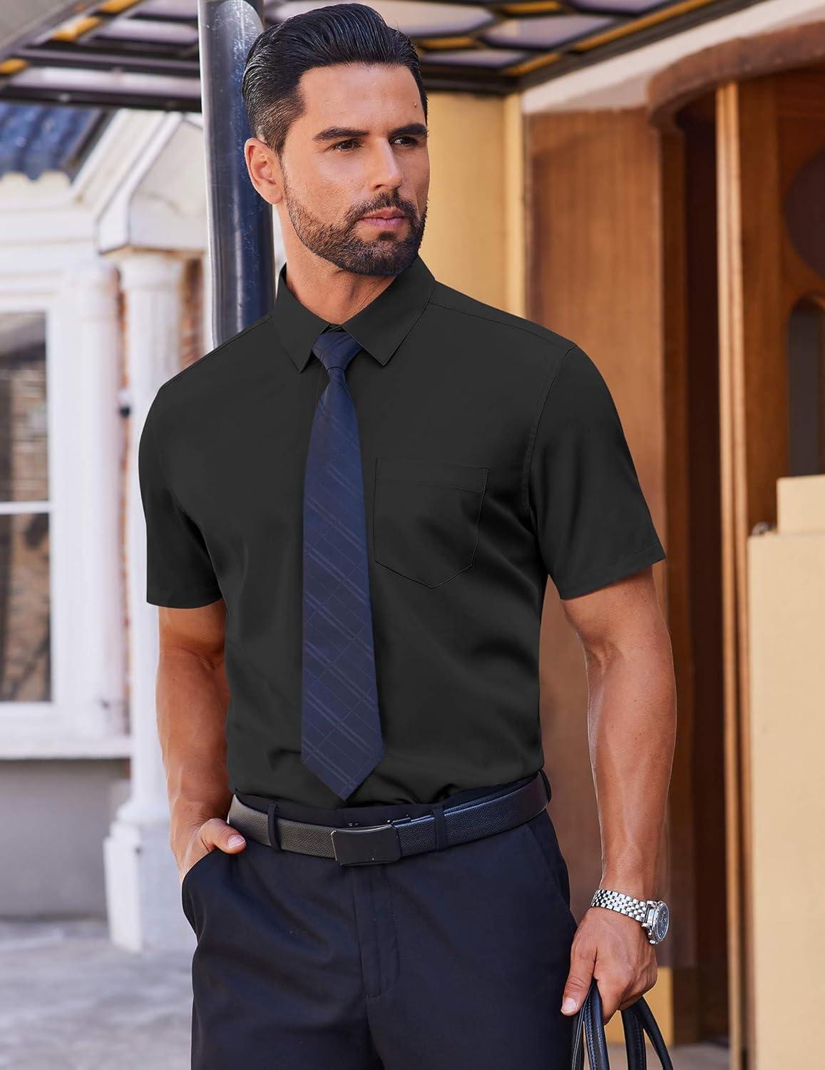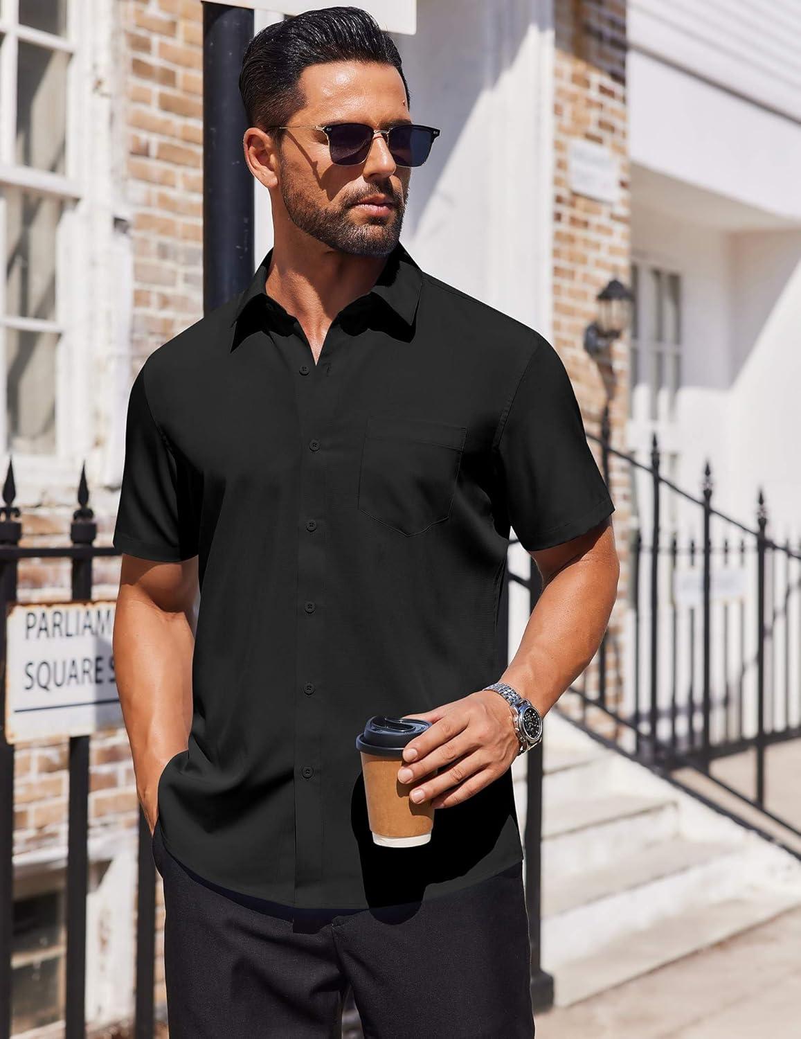 COOFANDY Mens Short Sleeve Button Down Shirts Lightweight Stain Shield Business Casual Dress Shirt Wrinkle Free(Black)
