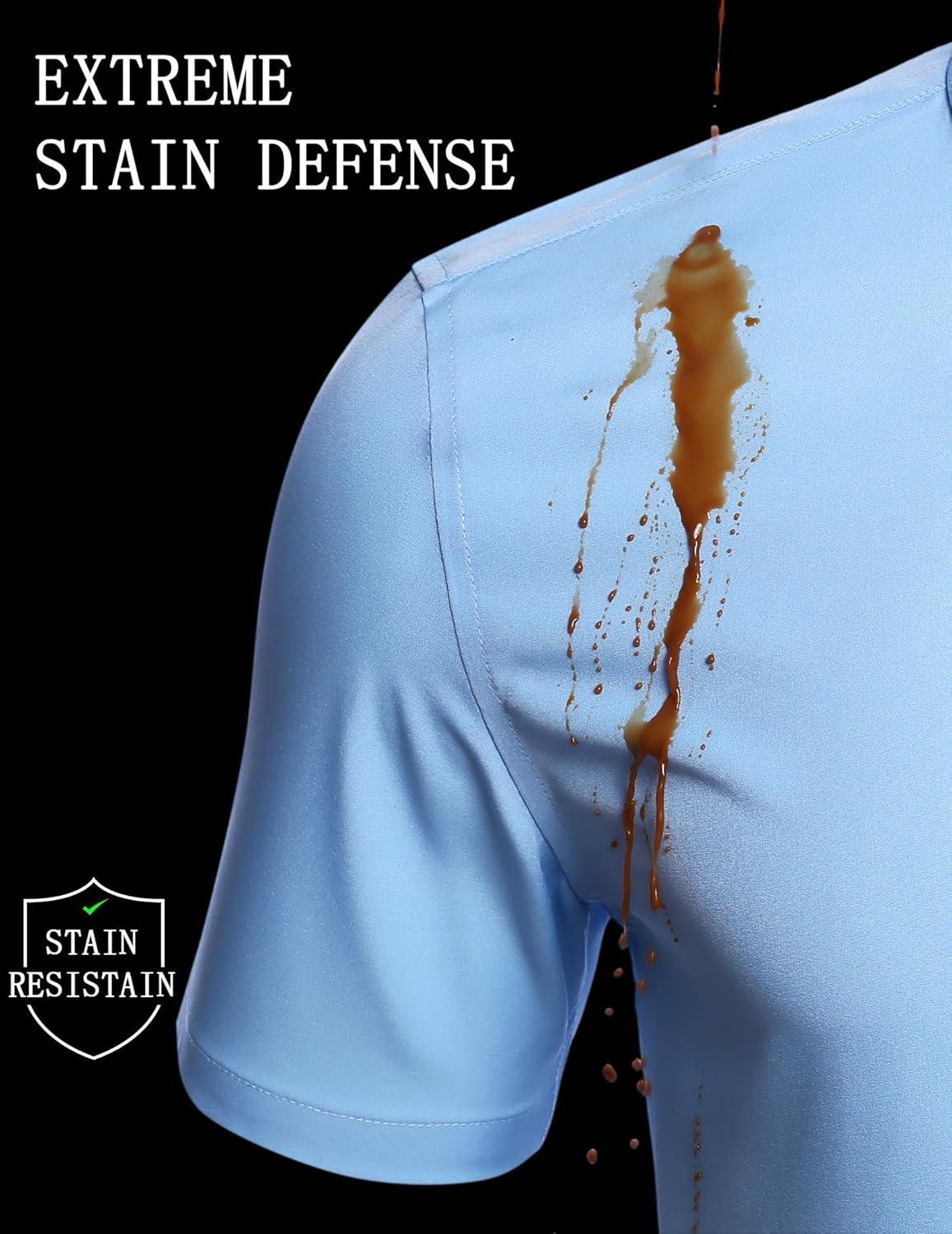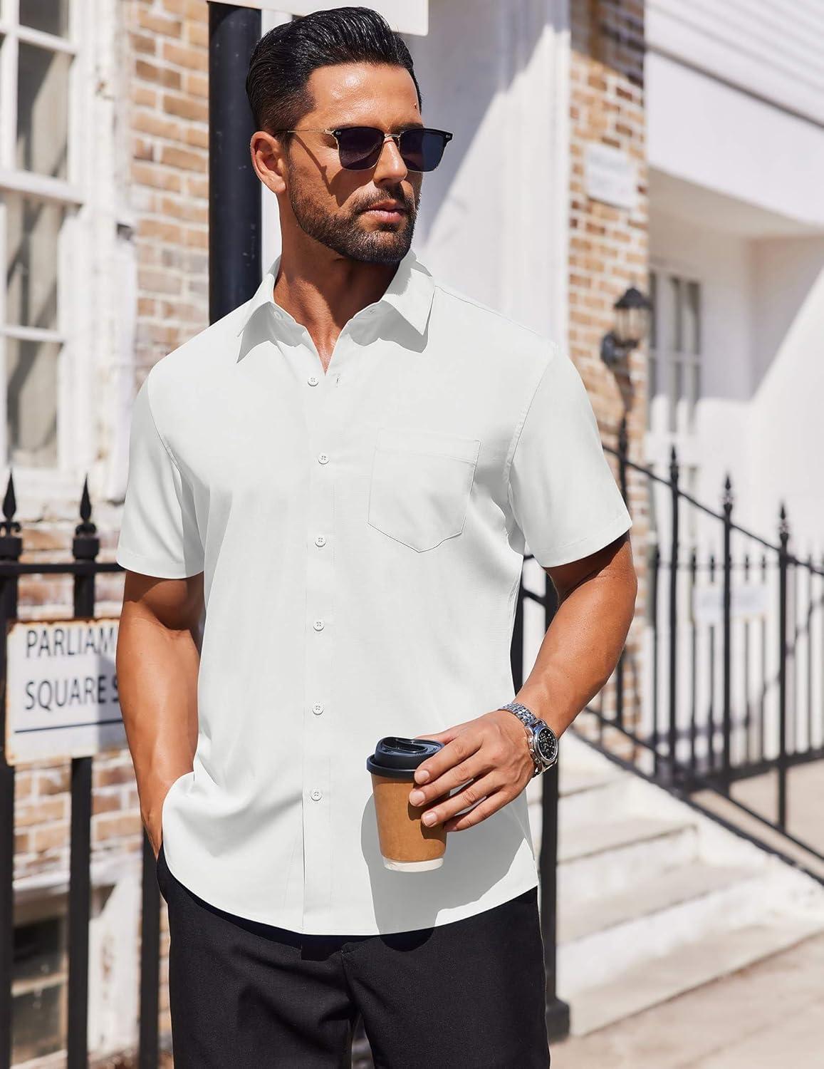 COOFANDY Mens Short Sleeve Button Down Shirts Lightweight Stain Shield Business Casual Dress Shirt Wrinkle Free(White)