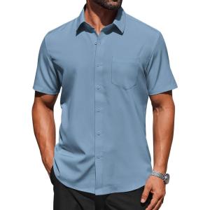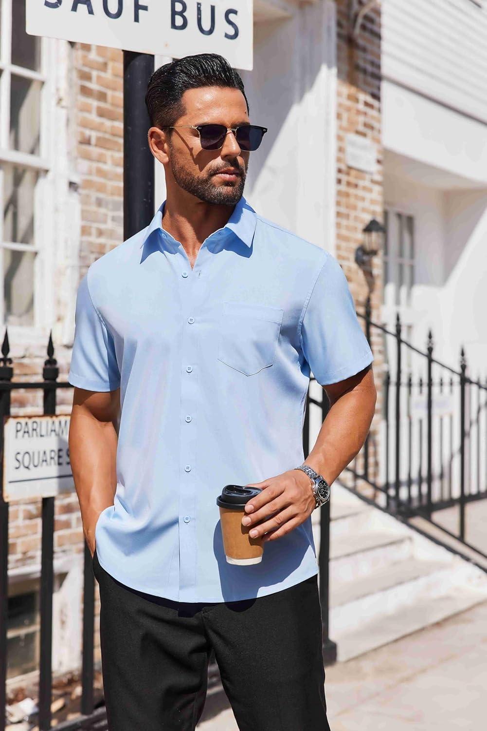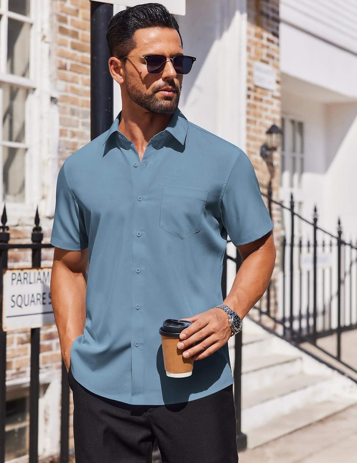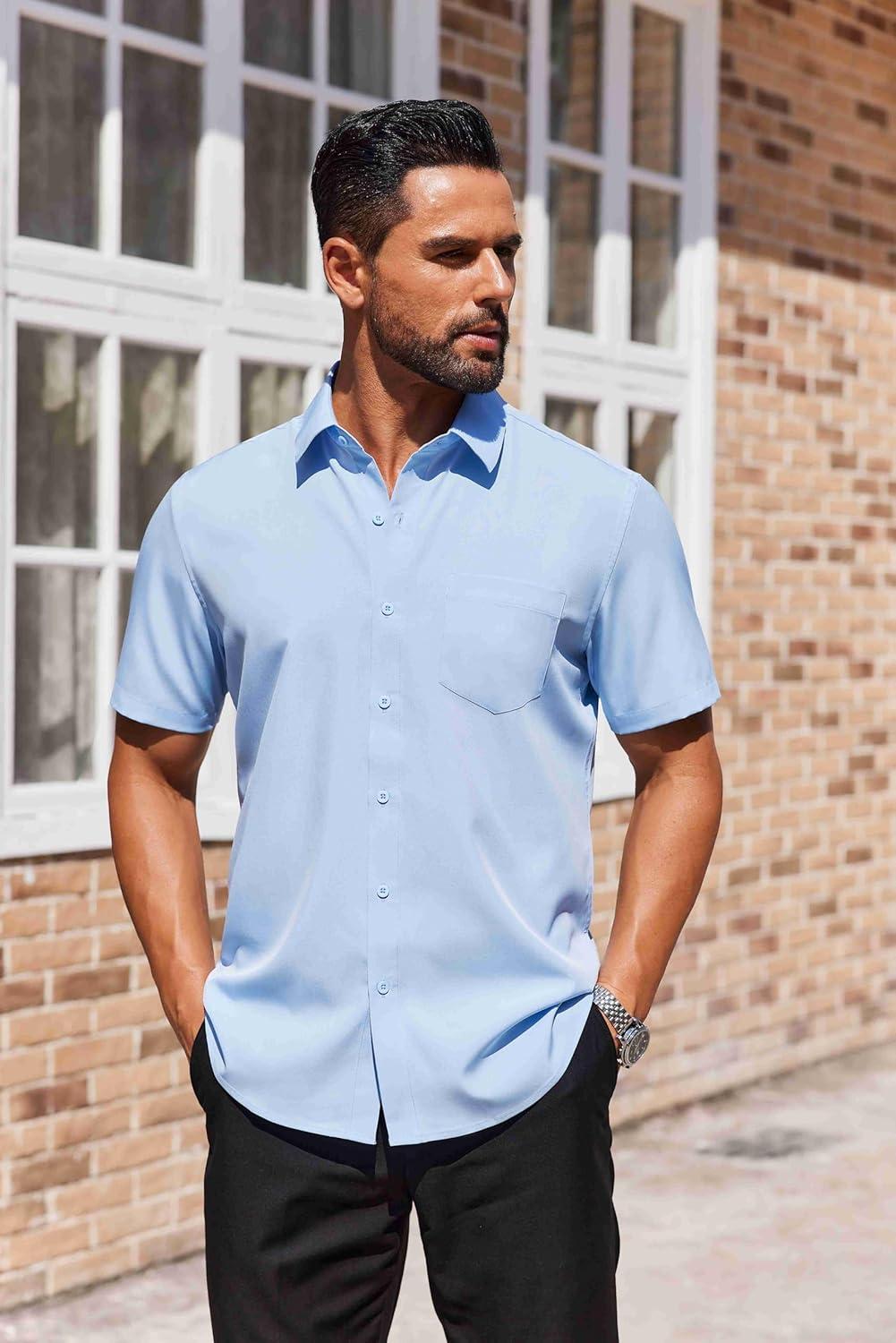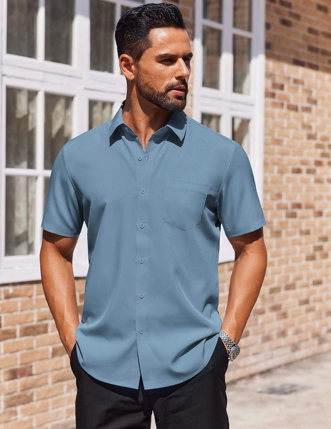COOFANDY Mens Short Sleeve Button Down Shirts Lightweight Stain Shield Business Casual Dress Shirt Wrinkle Free(Blue)