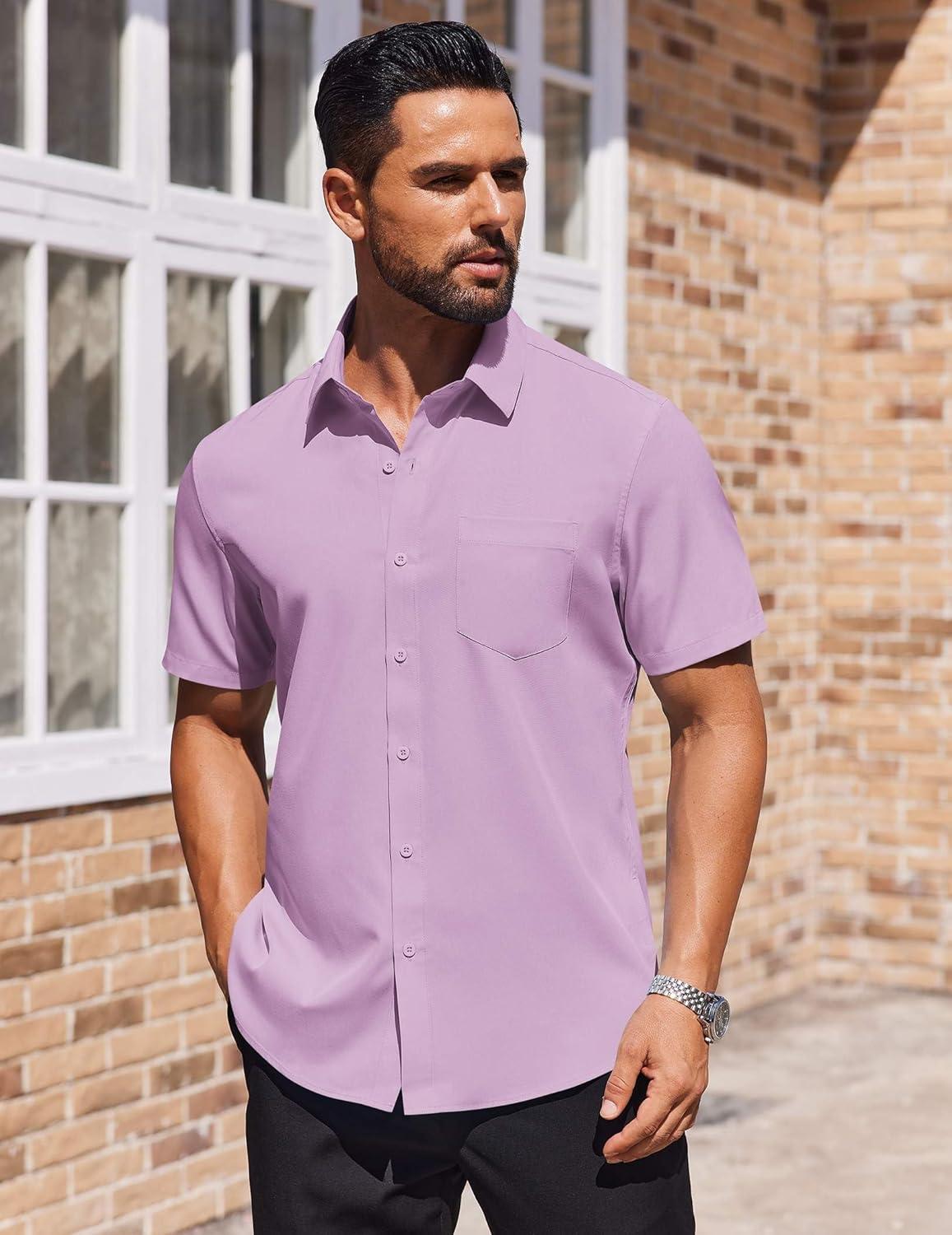 COOFANDY Mens Short Sleeve Button Down Shirts Lightweight Stain Shield Business Casual Dress Shirt Wrinkle Free(Purple)