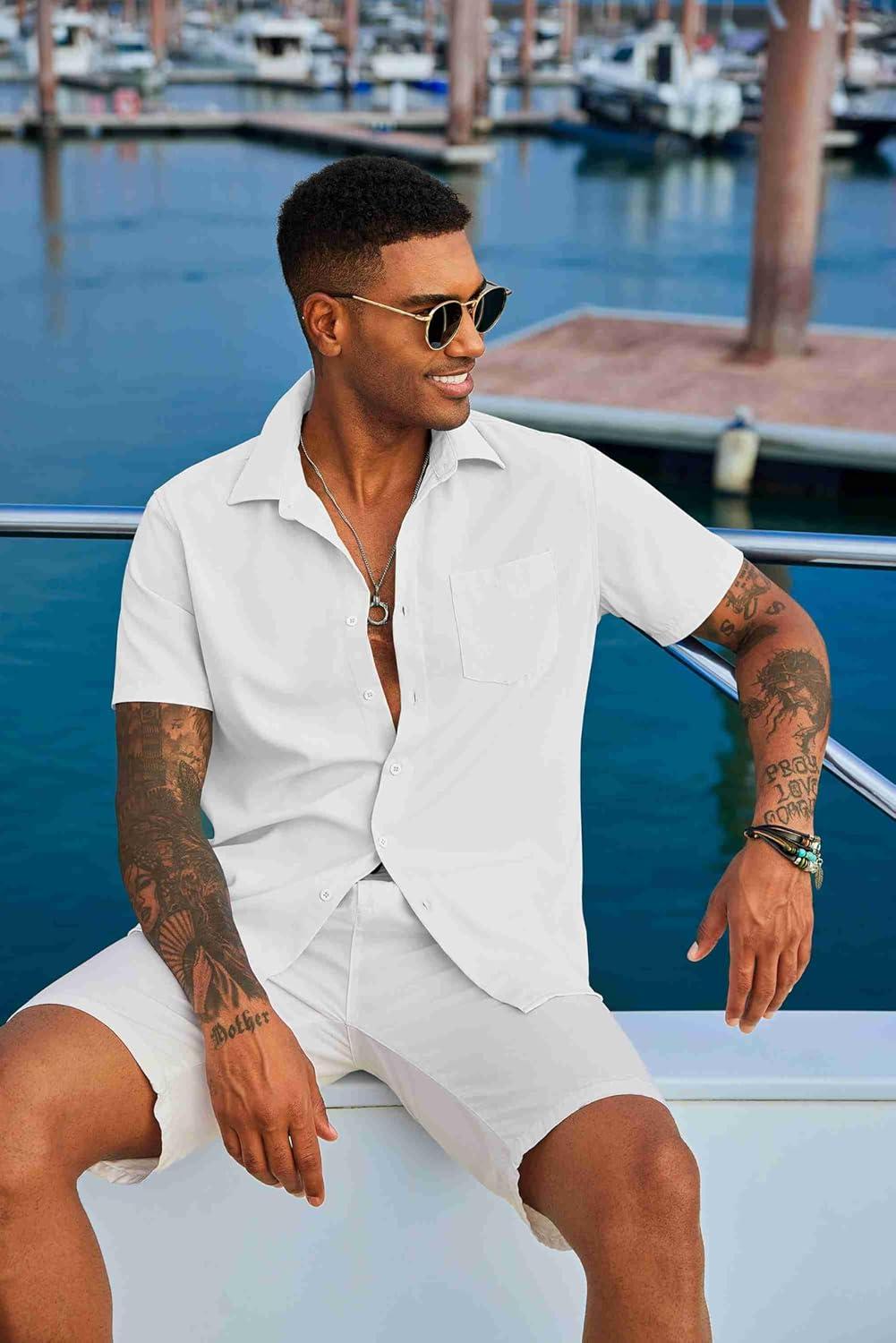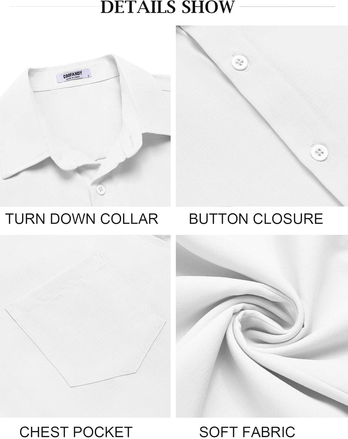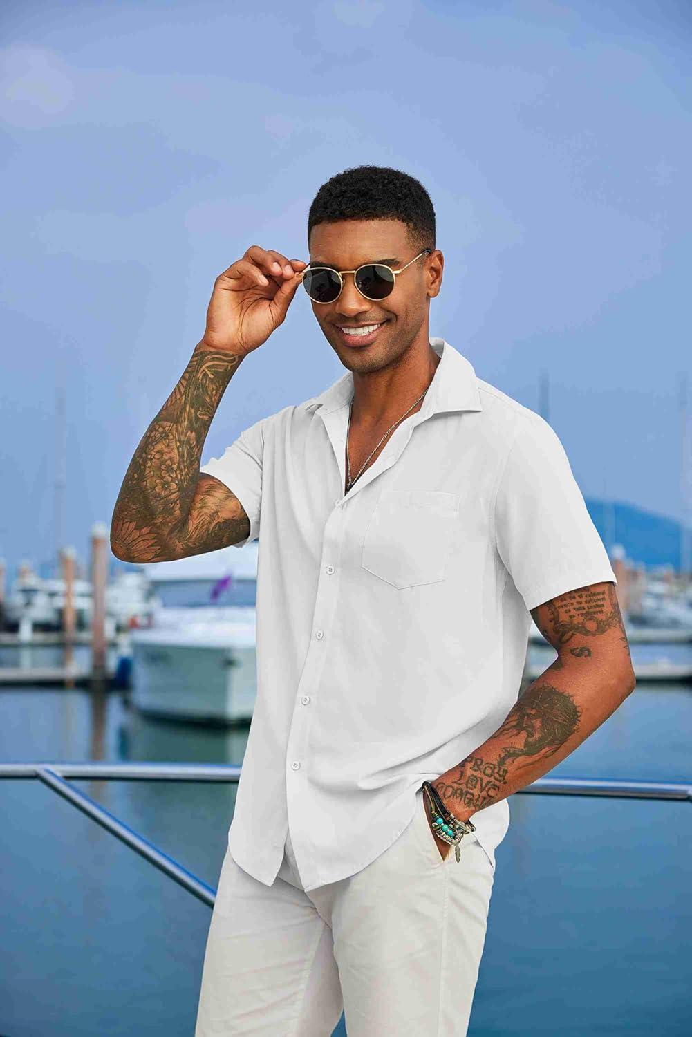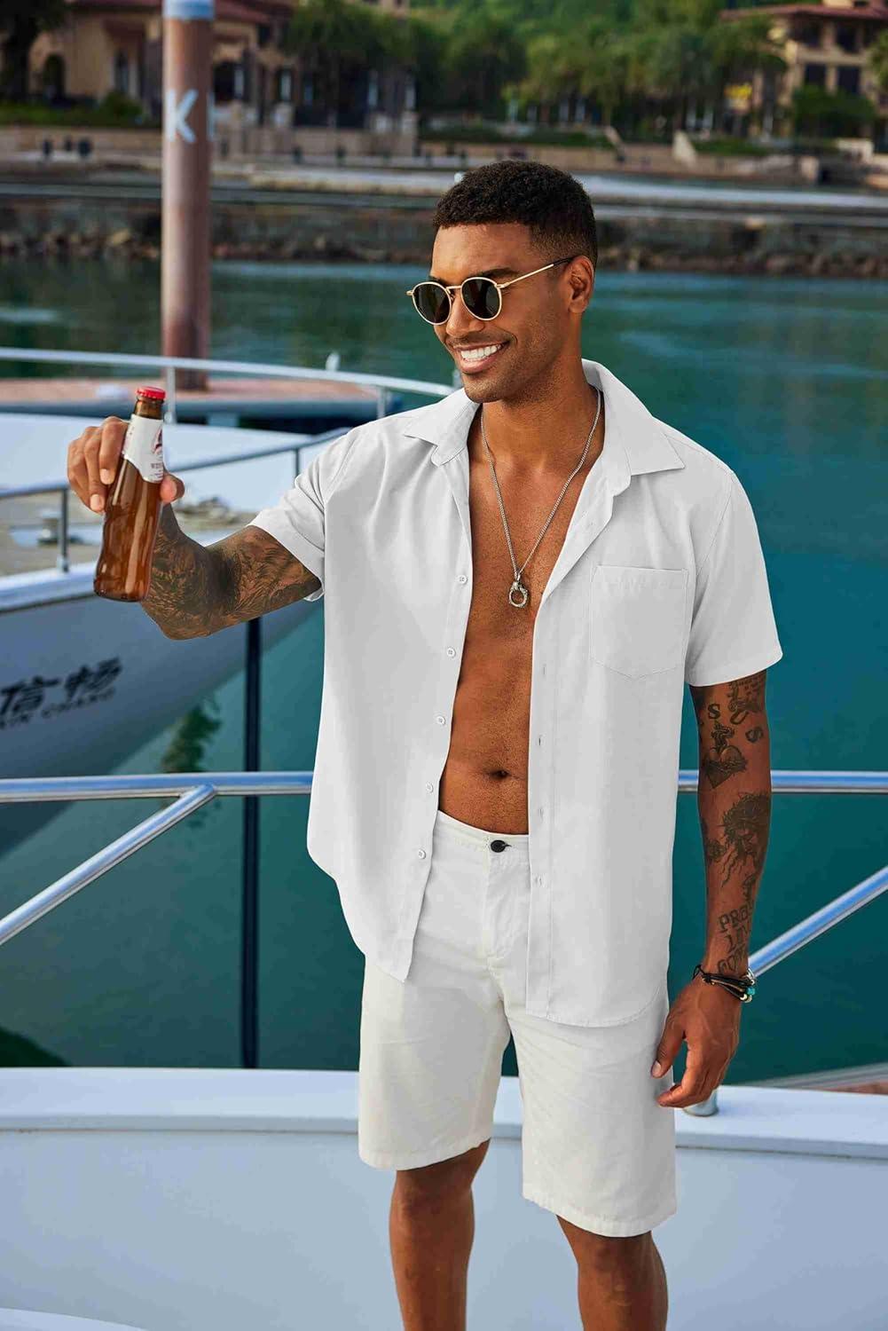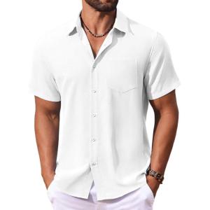 COOFANDY Mens Summer Button Down Shirts Short Sleeve Casual Summer Shirts Beach Wedding Shirts White