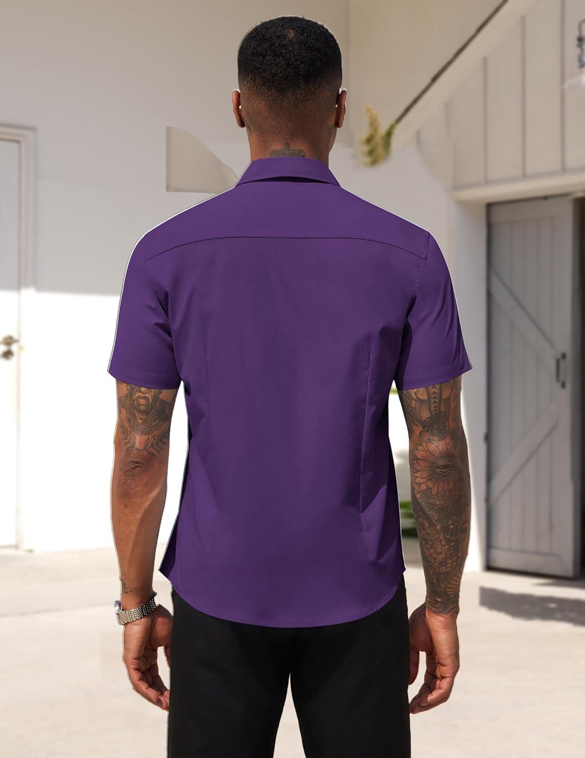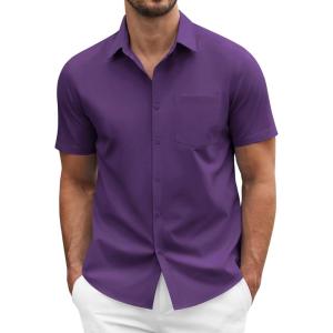 COOFANDY Mens Short Sleeve Button Down Shirts Casual Dress Shirts for Men Summer Untucked Shirts with Pocket(Purple)