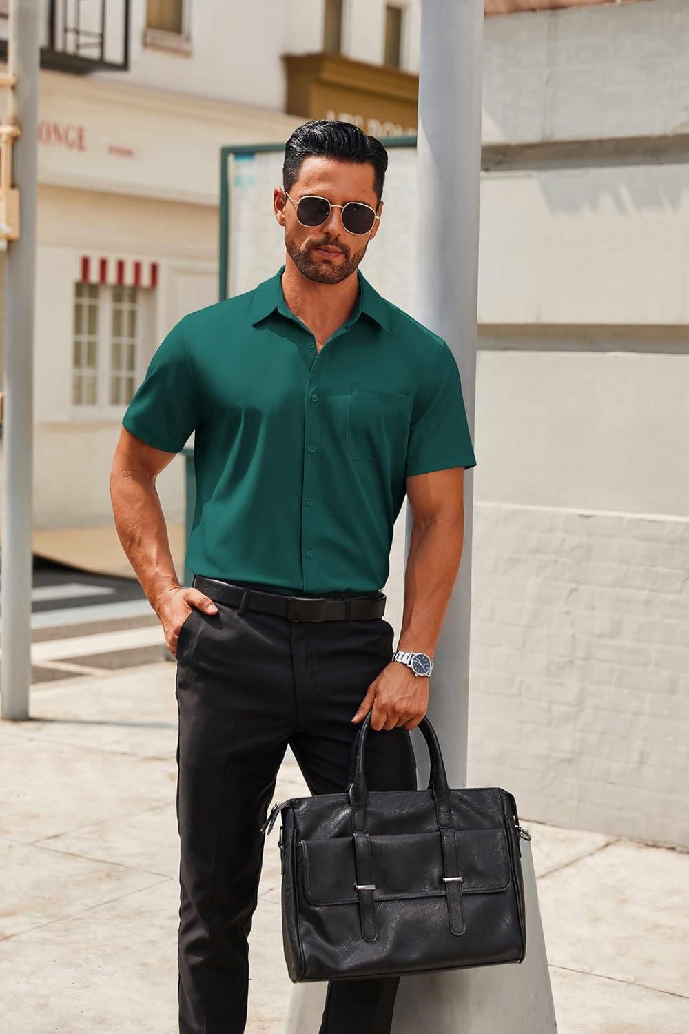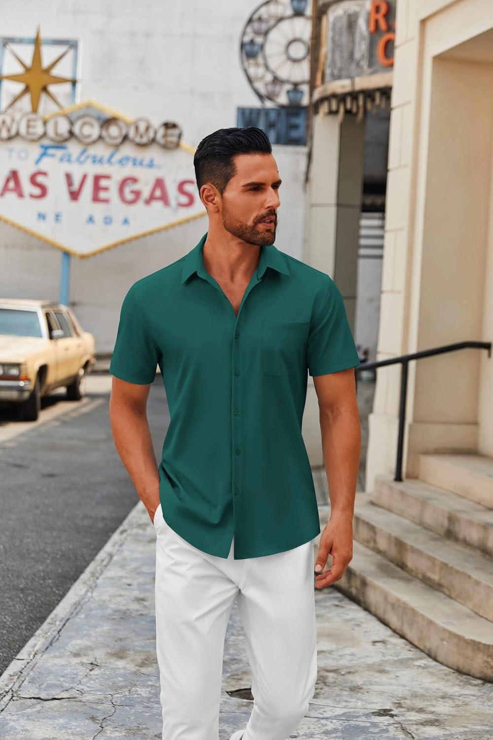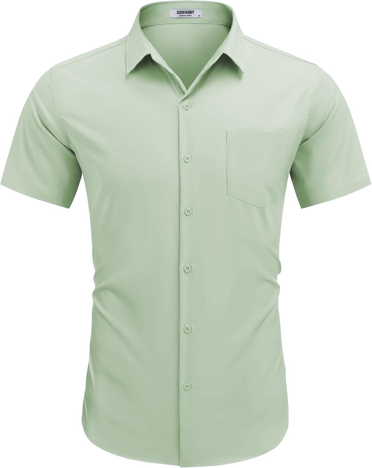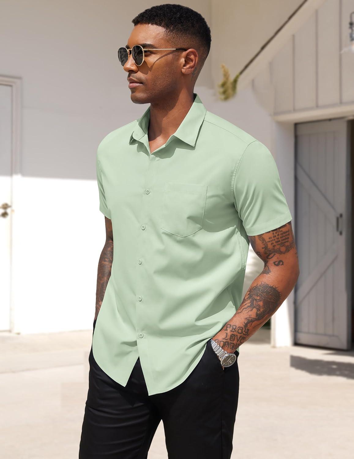COOFANDY Mens Short Sleeve Button Down Shirts Casual Dress Shirts for Men Summer Untucked Shirts with Pocket(Light Green)