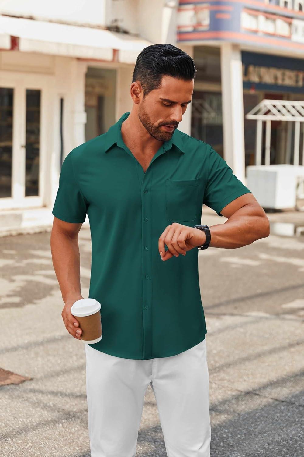 COOFANDY Mens Short Sleeve Button Down Shirts Casual Dress Shirts for Men Summer Untucked Shirts with Pocket(Teal)
