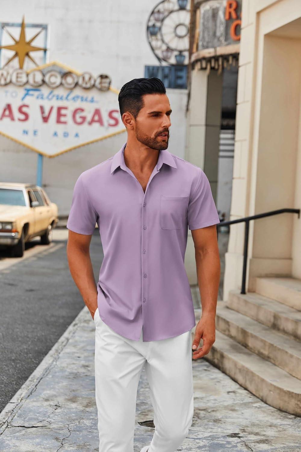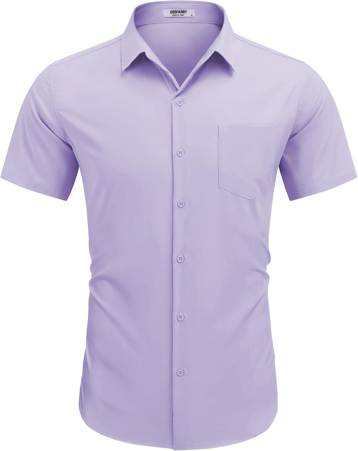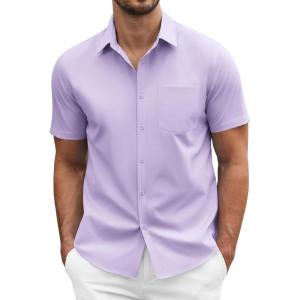 COOFANDY Mens Short Sleeve Button Down Shirts Casual Dress Shirts for Men Summer Untucked Shirts with Pocket(Lavender)