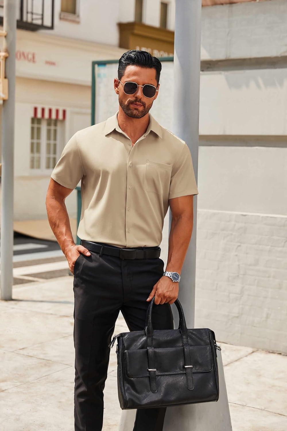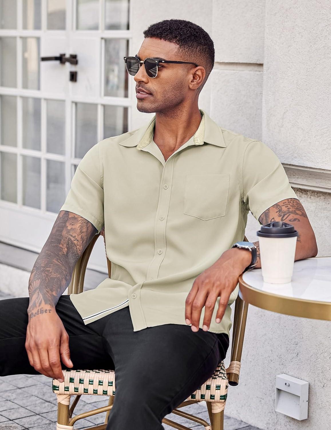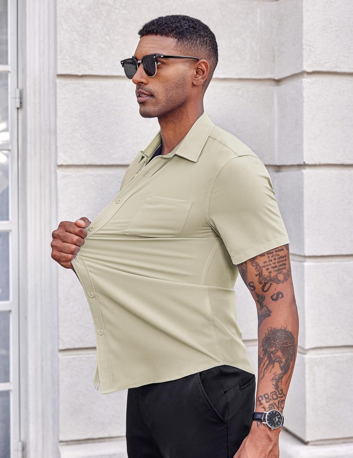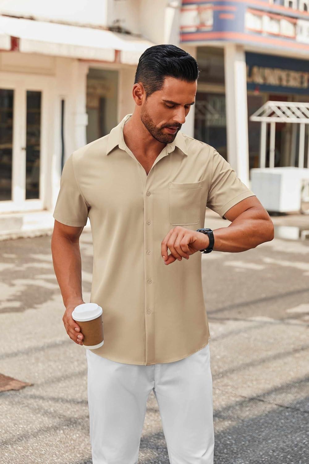 COOFANDY Mens Short Sleeve Button Down Shirts Casual Dress Shirts for Men Summer Untucked Shirts with Pocket(Khaki)