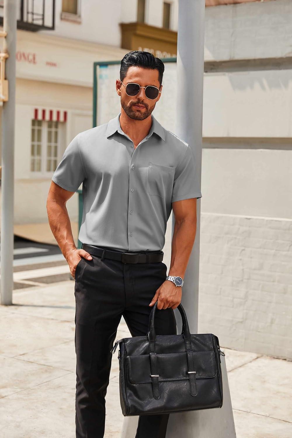 COOFANDY Mens Short Sleeve Button Down Shirts Casual Dress Shirts for Men Summer Untucked Shirts with Pocket(Grey)