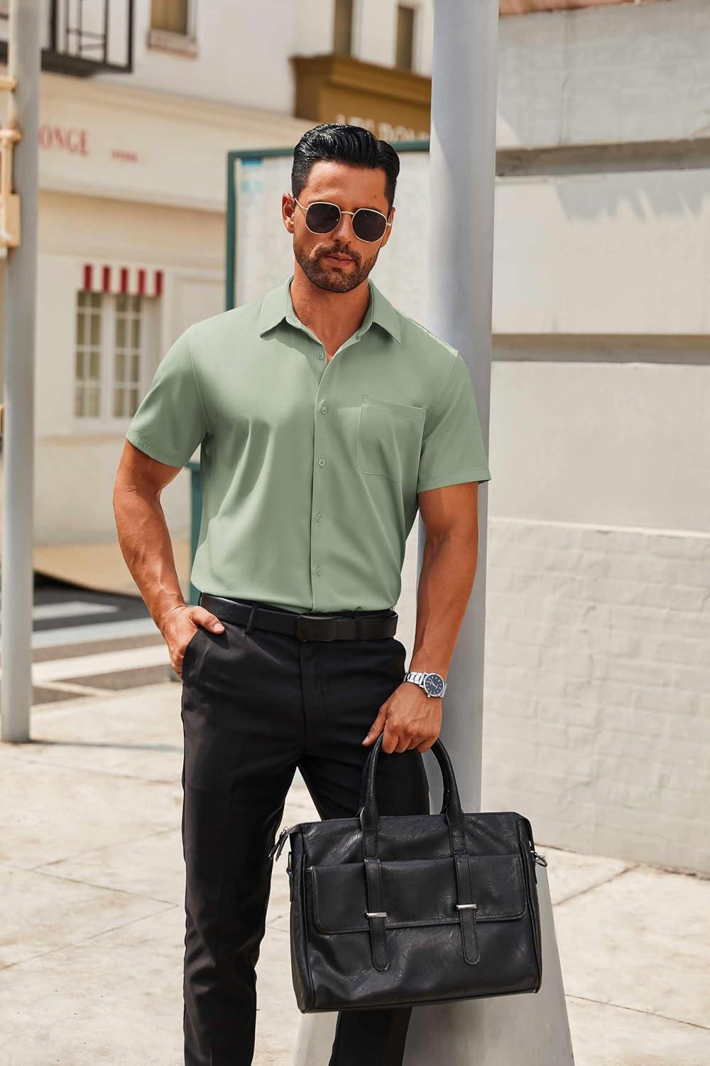 COOFANDY Mens Short Sleeve Button Down Shirts Casual Dress Shirts for Men Summer Untucked Shirts with Pocket(Sage Green)