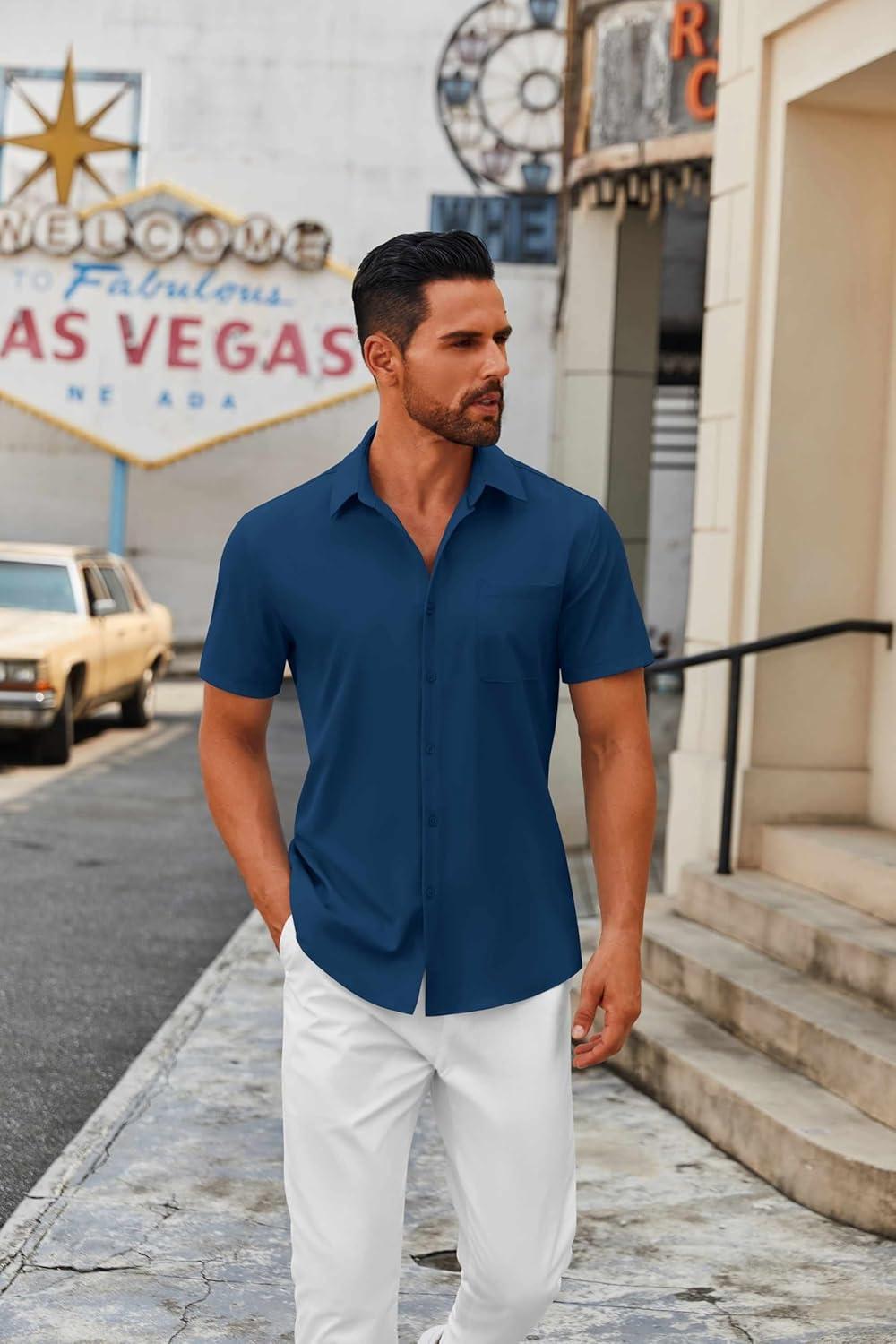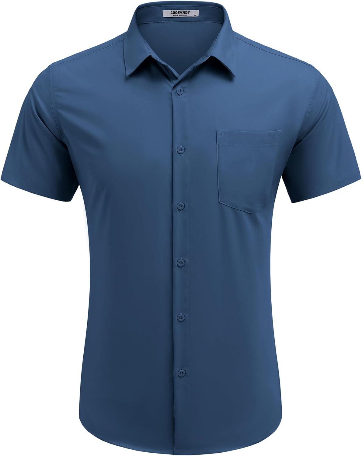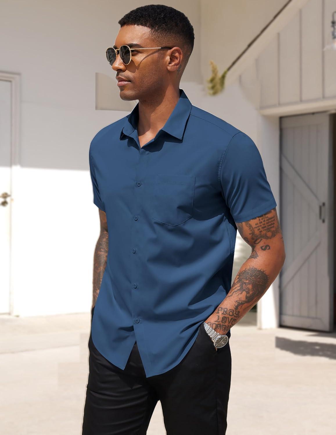 COOFANDY Mens Short Sleeve Button Down Shirts Casual Dress Shirts for Men Summer Untucked Shirts with Pocket(Lake Blue)