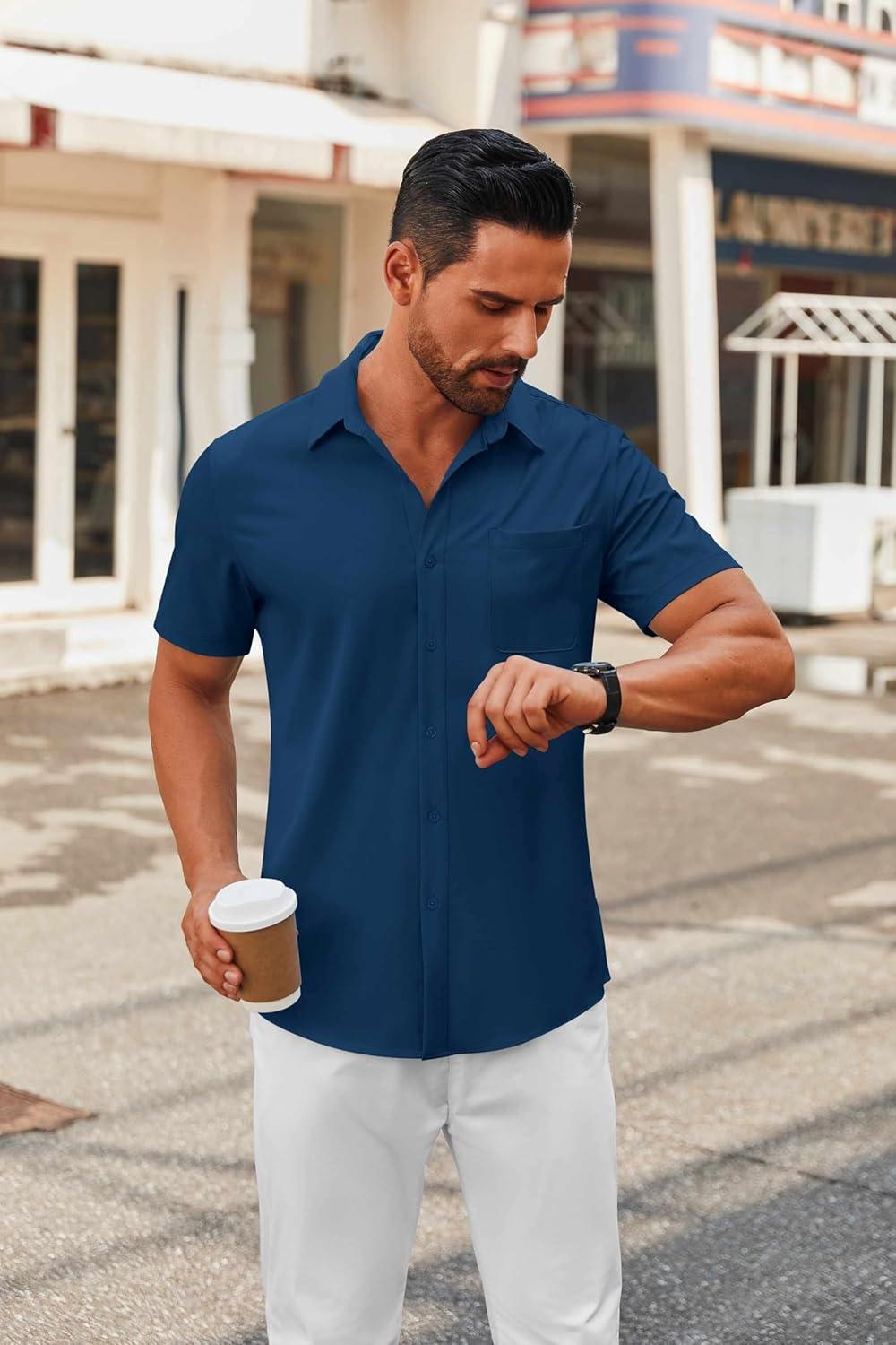 COOFANDY Mens Short Sleeve Button Down Shirts Casual Dress Shirts for Men Summer Untucked Shirts with Pocket(Navy)