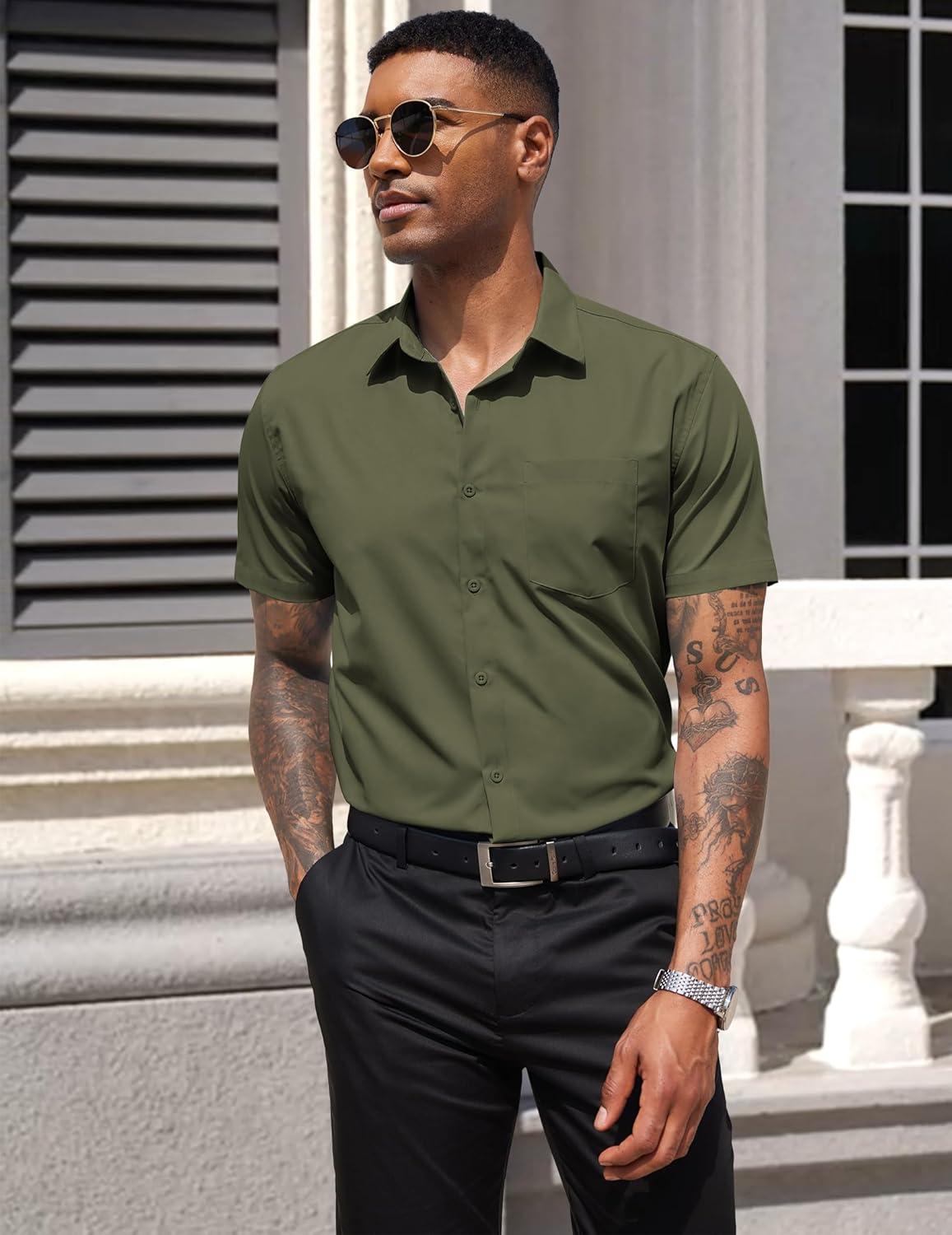 COOFANDY Mens Short Sleeve Button Down Shirts Casual Dress Shirts for Men Summer Untucked Shirts with Pocket(Olive Green)