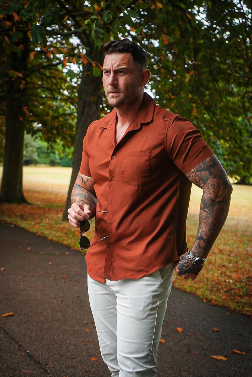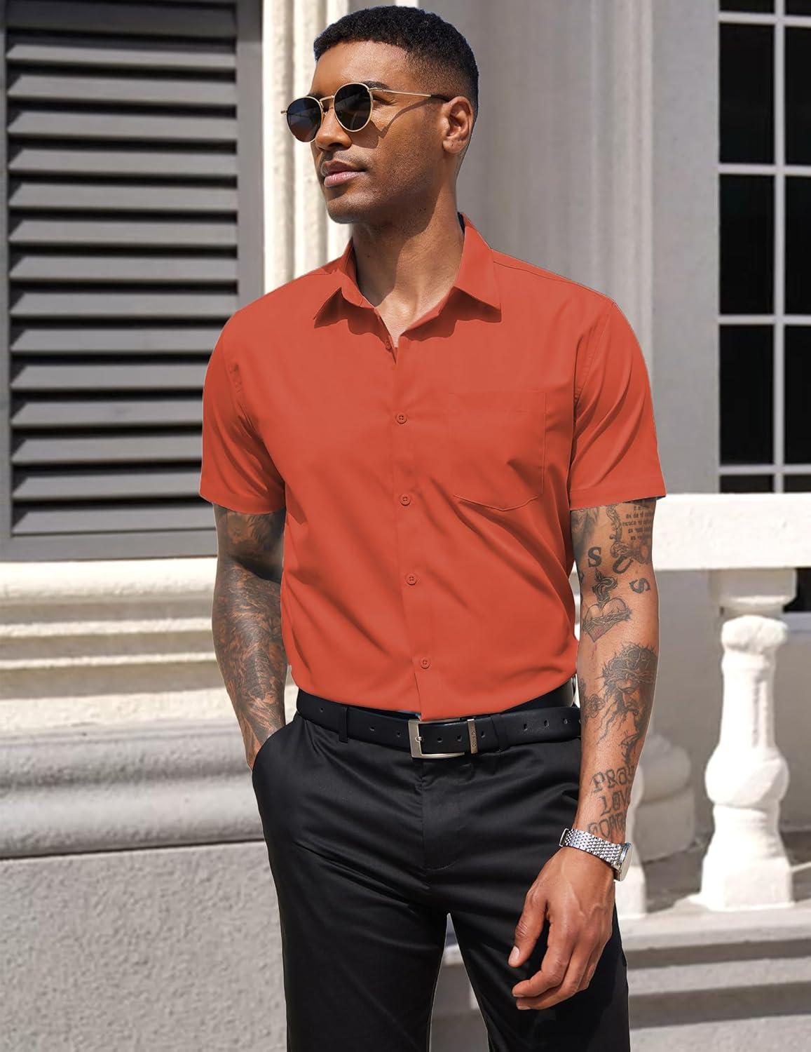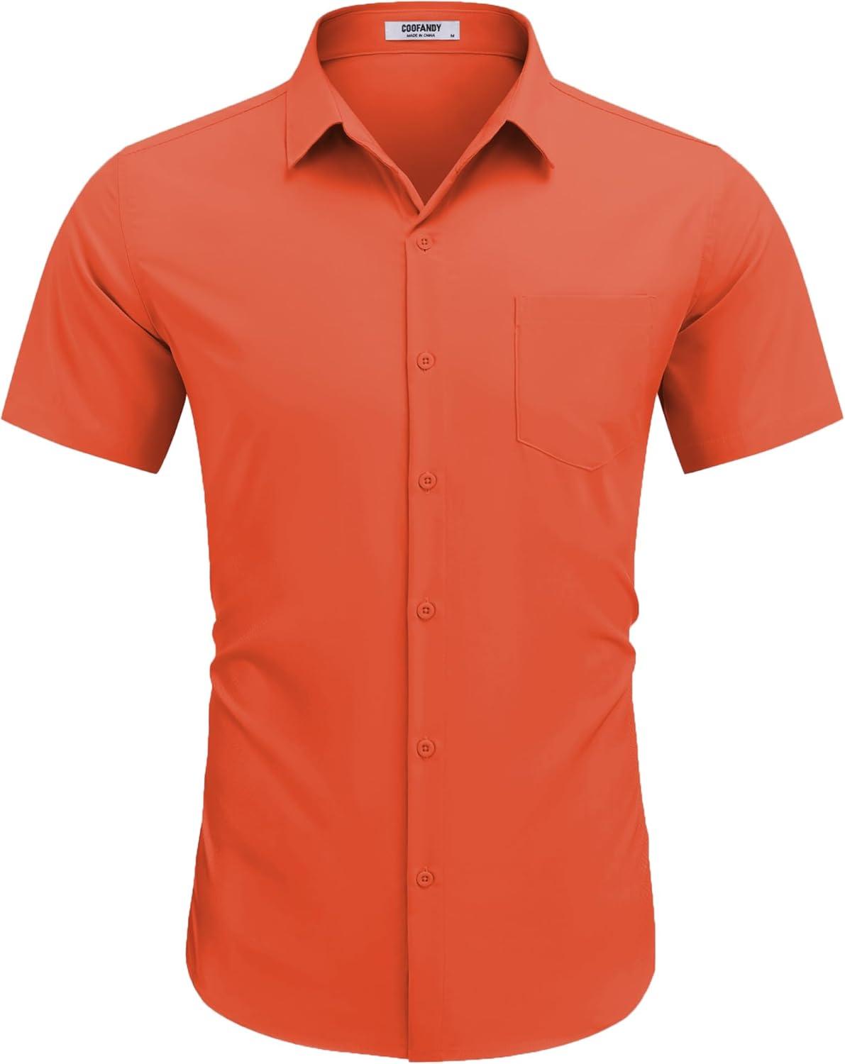 COOFANDY Mens Short Sleeve Button Down Shirts Casual Dress Shirts for Men Summer Untucked Shirts with Pocket(Orange)