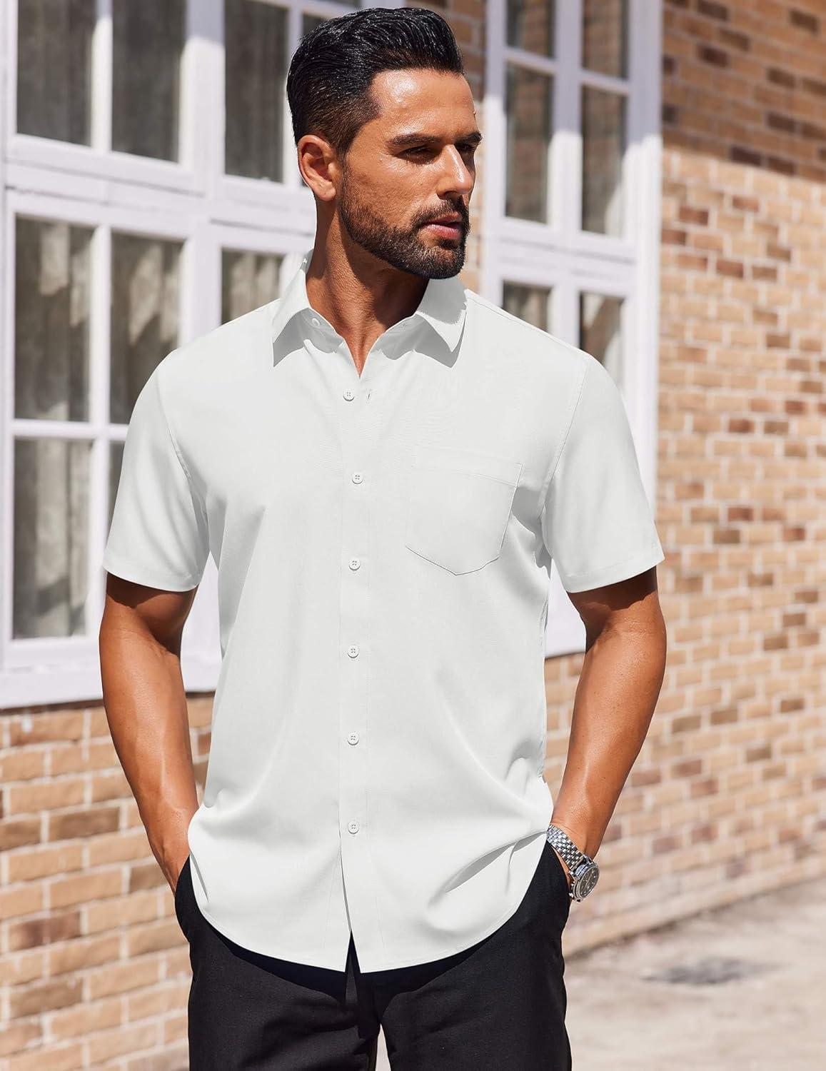 COOFANDY Mens Short Sleeve Button Down Shirts Casual Dress Shirts for Men Summer Untucked Shirts with Pocket(White)