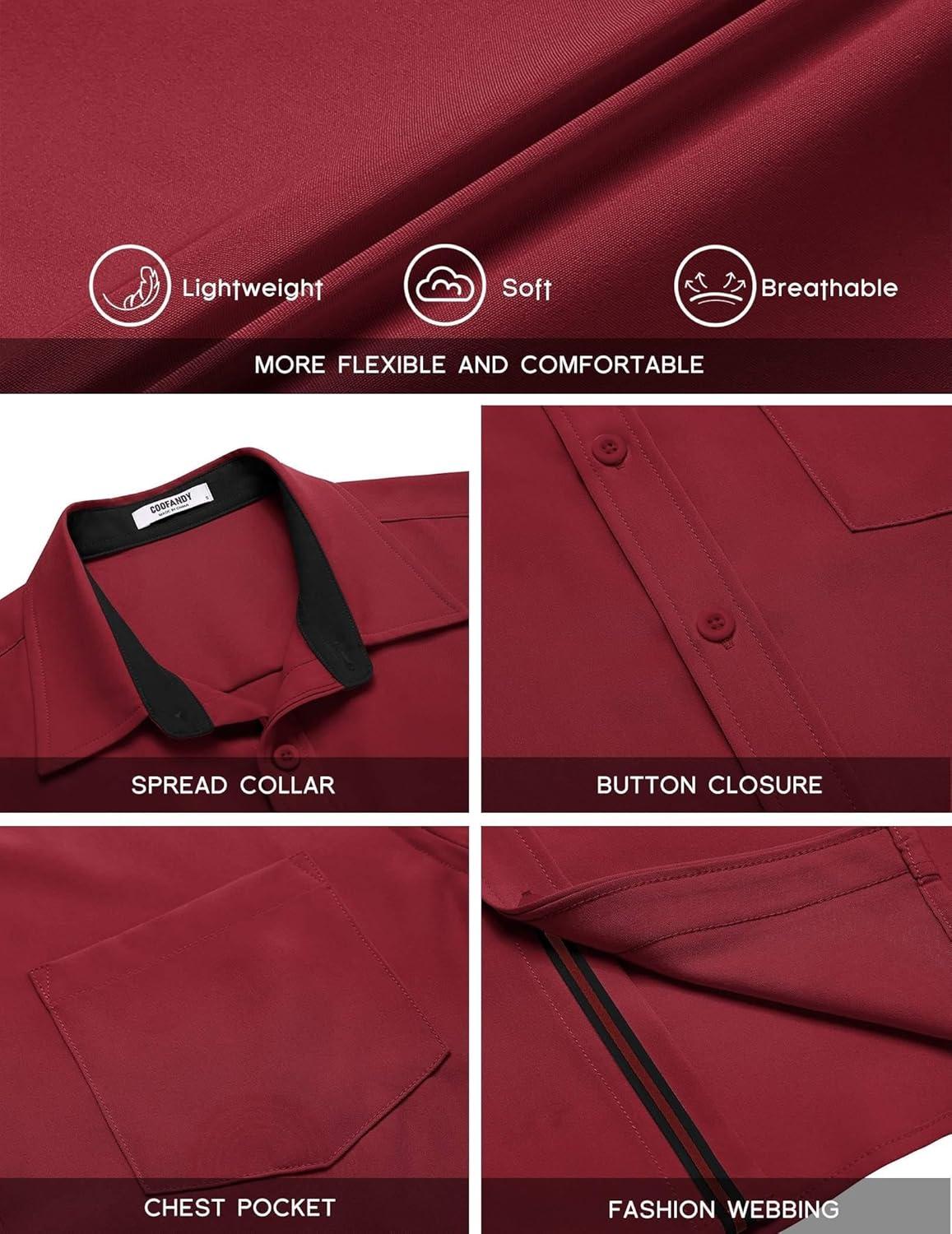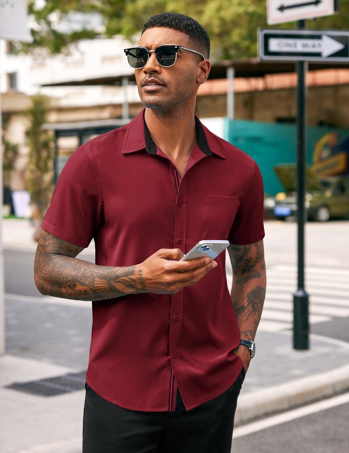 COOFANDY Mens Short Sleeve Button Down Shirts Casual Dress Shirts for Men Summer Untucked Shirts with Pocket(Wine Red)