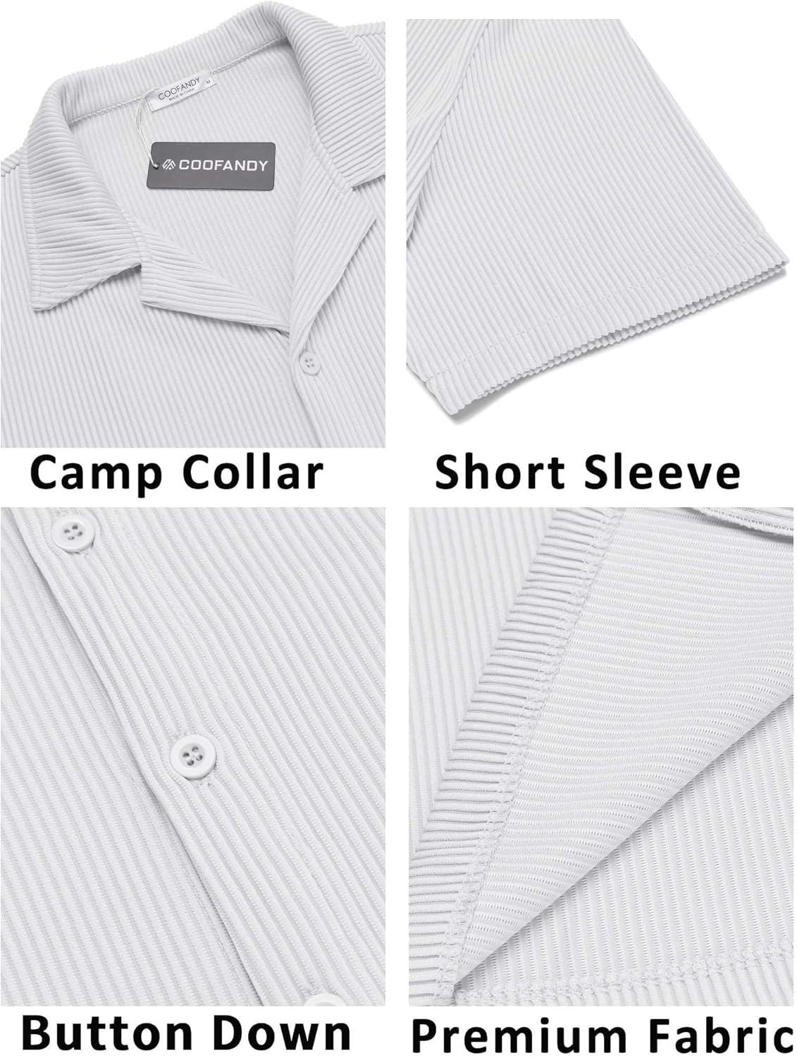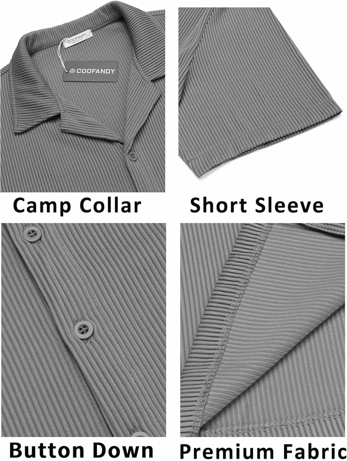 COOFANDY Men’s Casual Button Down Shirts Short Sleeve Regular Fit Fashion Camp Beach Shirts Tops(Dark Grey)