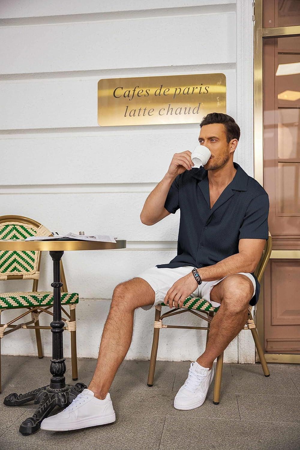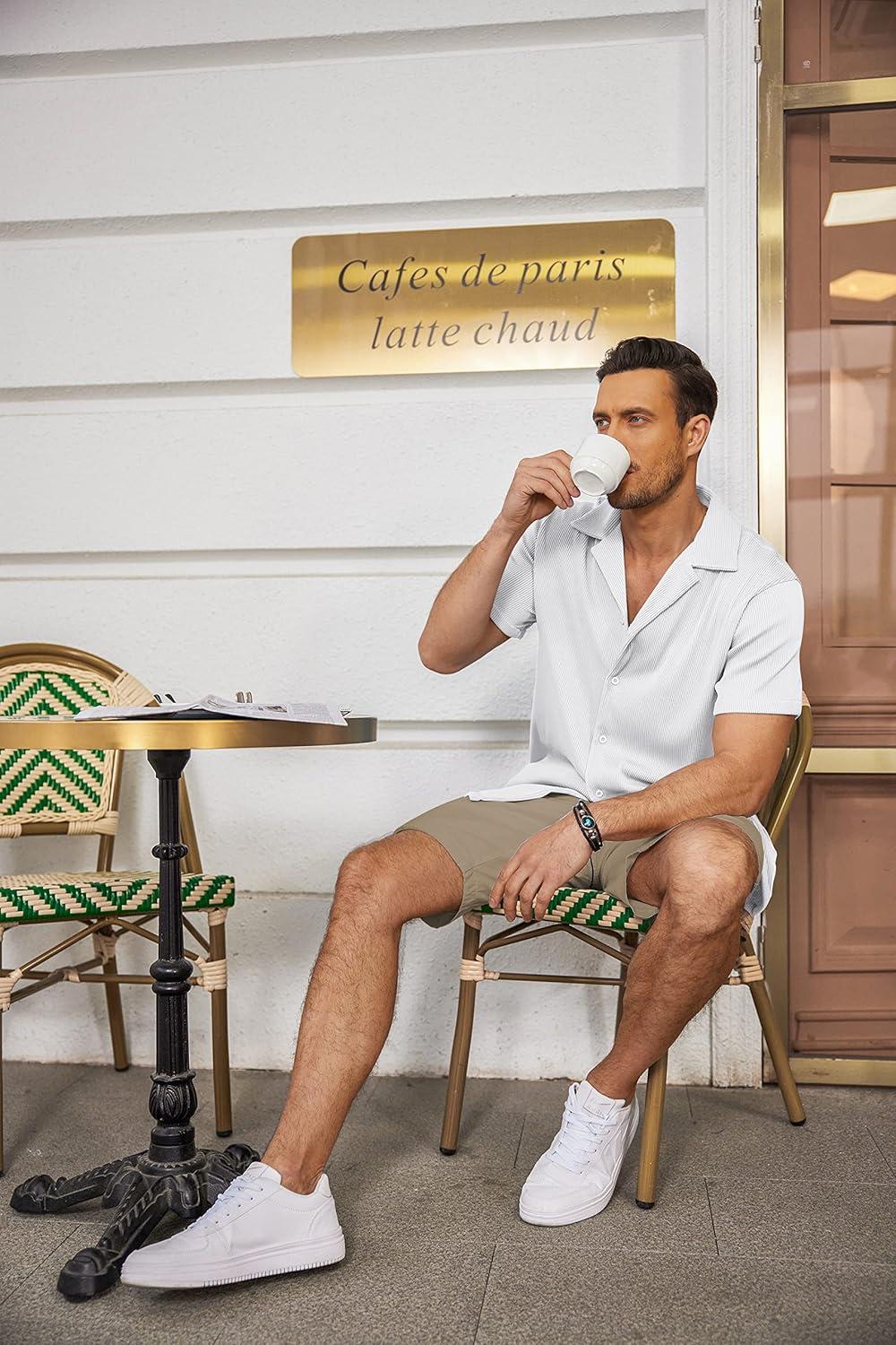 COOFANDY Men’s Casual Button Down Shirts Short Sleeve Regular Fit Fashion Camp Beach Shirts Tops(All White)