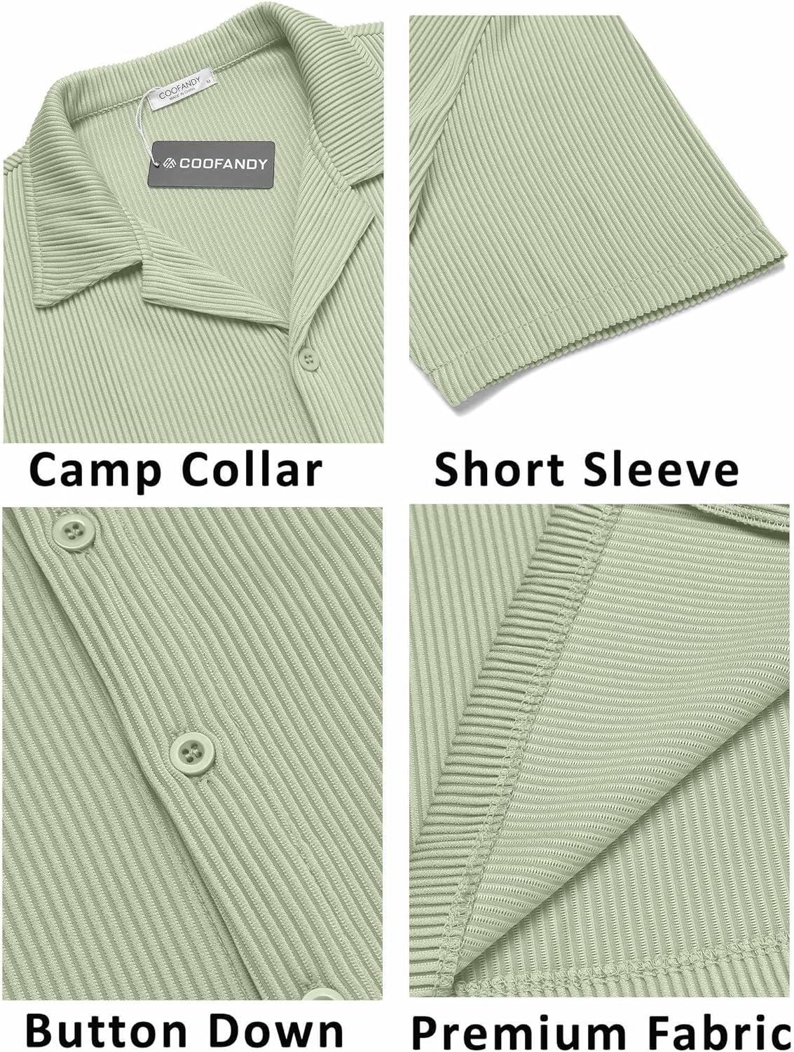 COOFANDY Men’s Casual Button Down Shirt Short Sleeve Textured Summer Cuban Beach Shirts(Bright Green)
