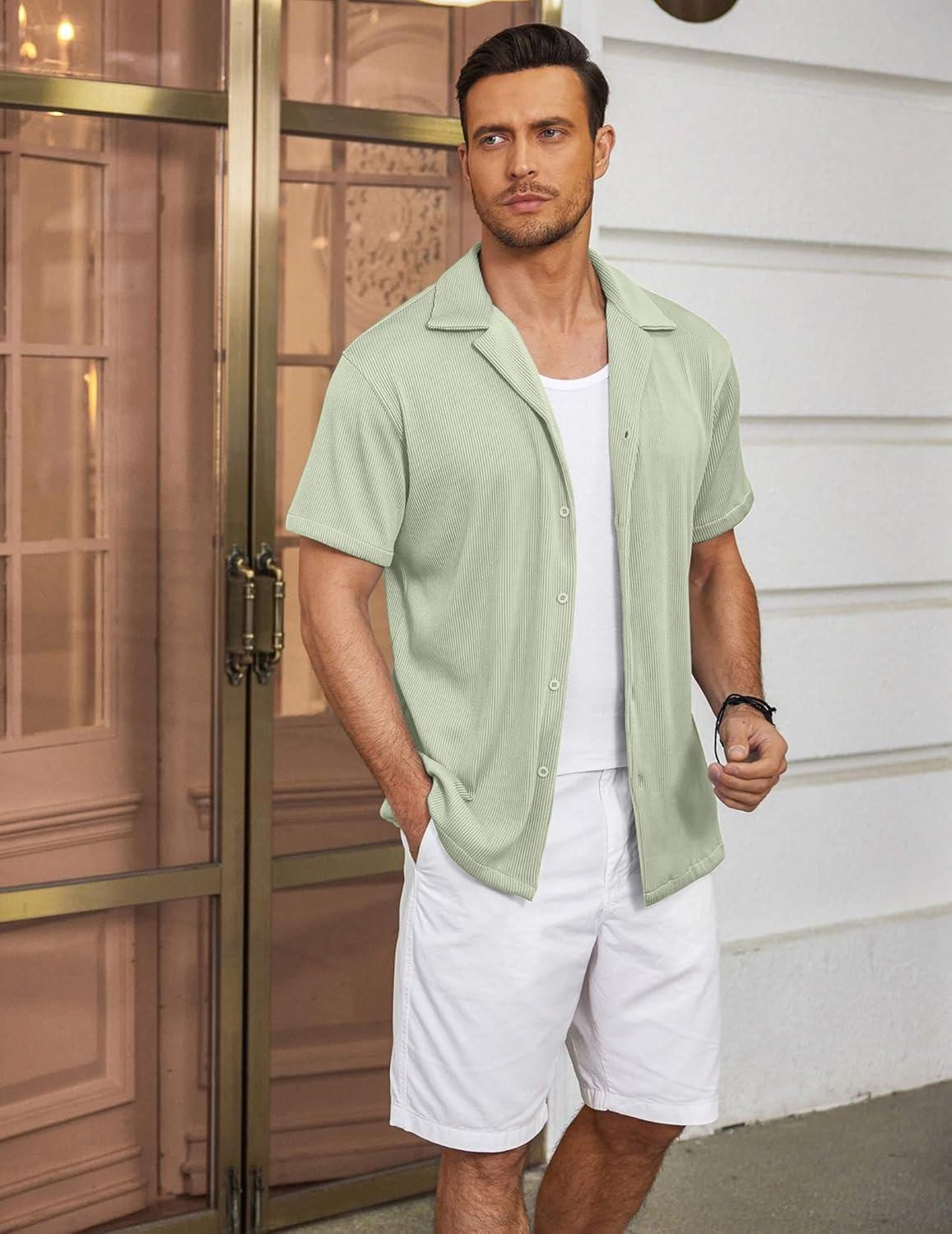 COOFANDY Men’s Casual Button Down Shirts Short Sleeve Regular Fit Fashion Camp Beach Shirts Tops(Light Green)