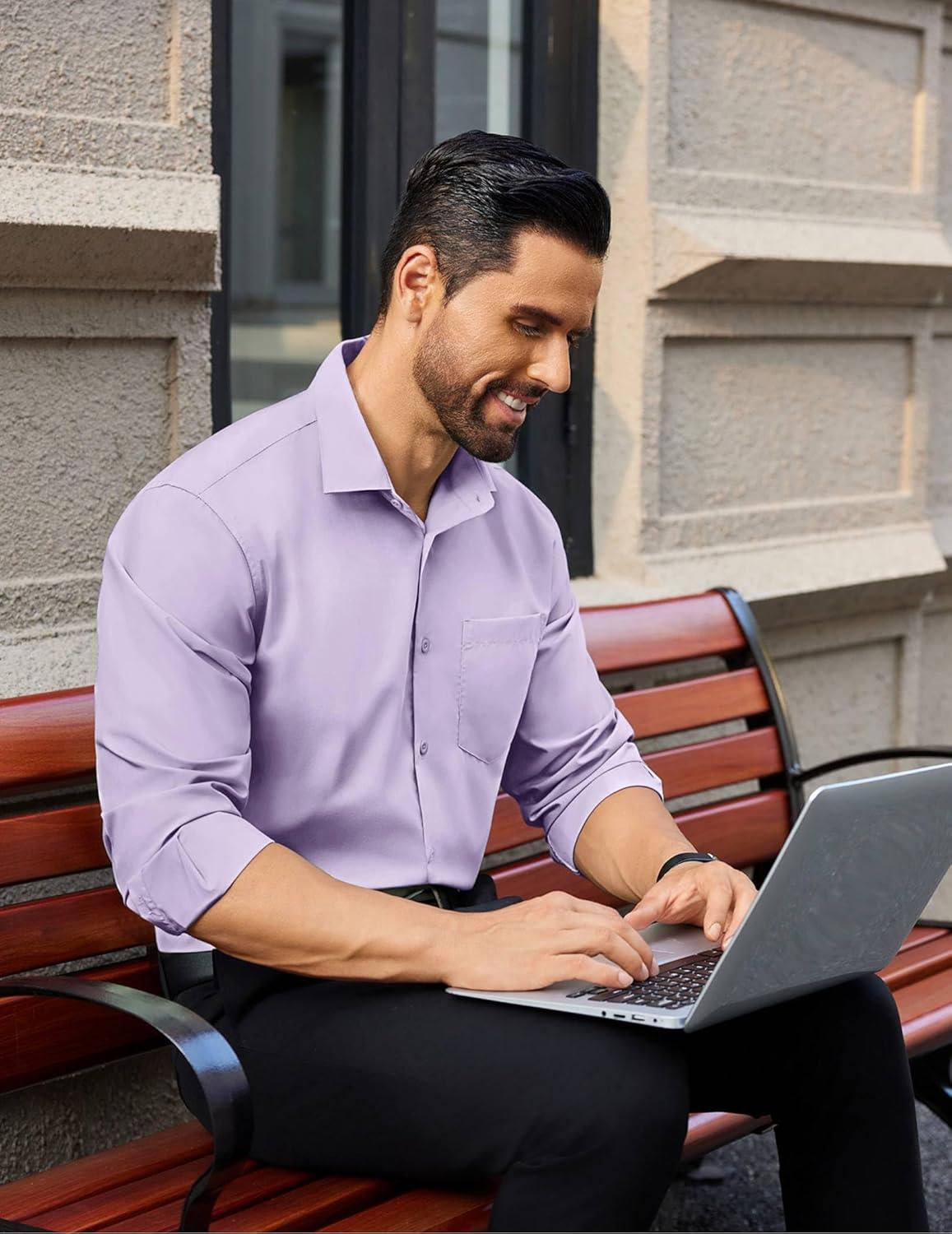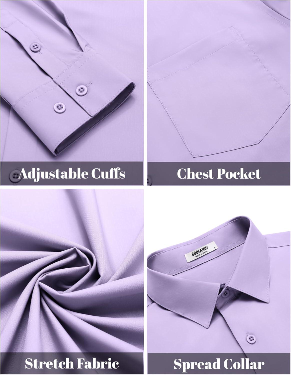 COOFANDY Mens Dress Shirts Long Sleeve Wrinkle Free Button Down Shirts Formal Business Shirt(Lavender)