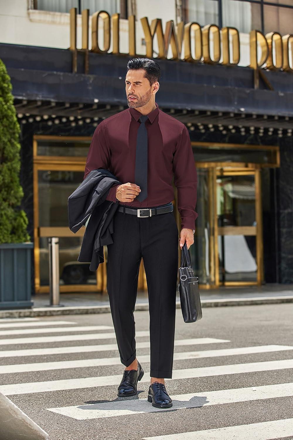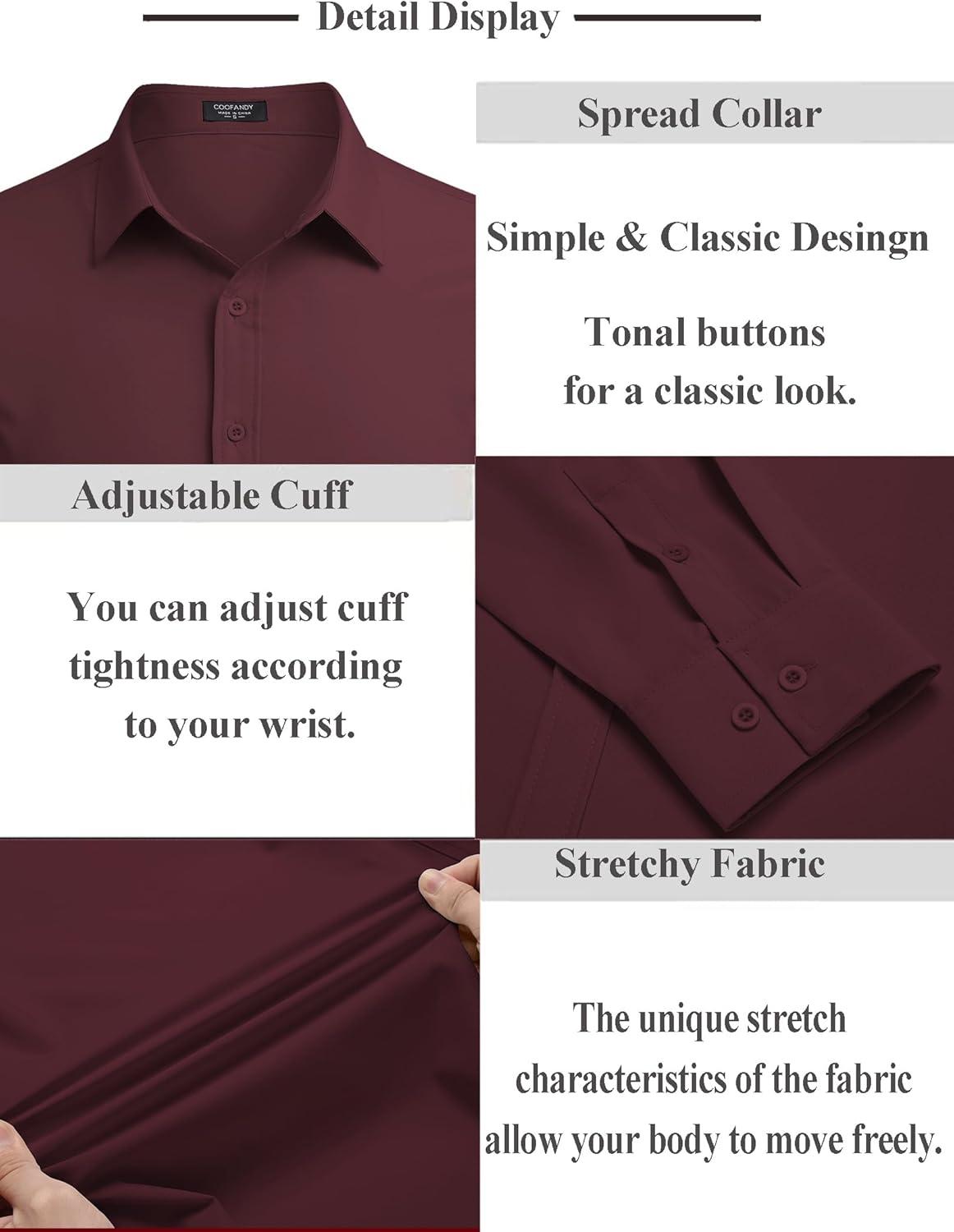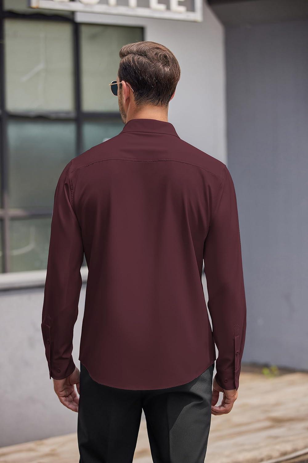 COOFANDY Men’s Business Dress Shirts Wrinkle Free Long Sleeve Regular Fit Dress Shirt Textured Casual Button Down Shirts(Wine Red)