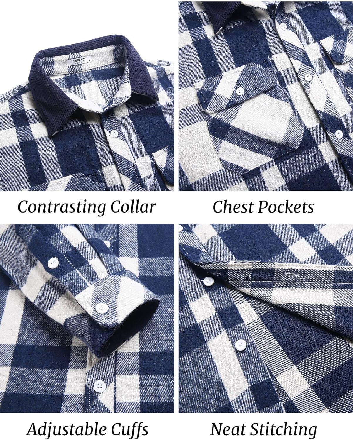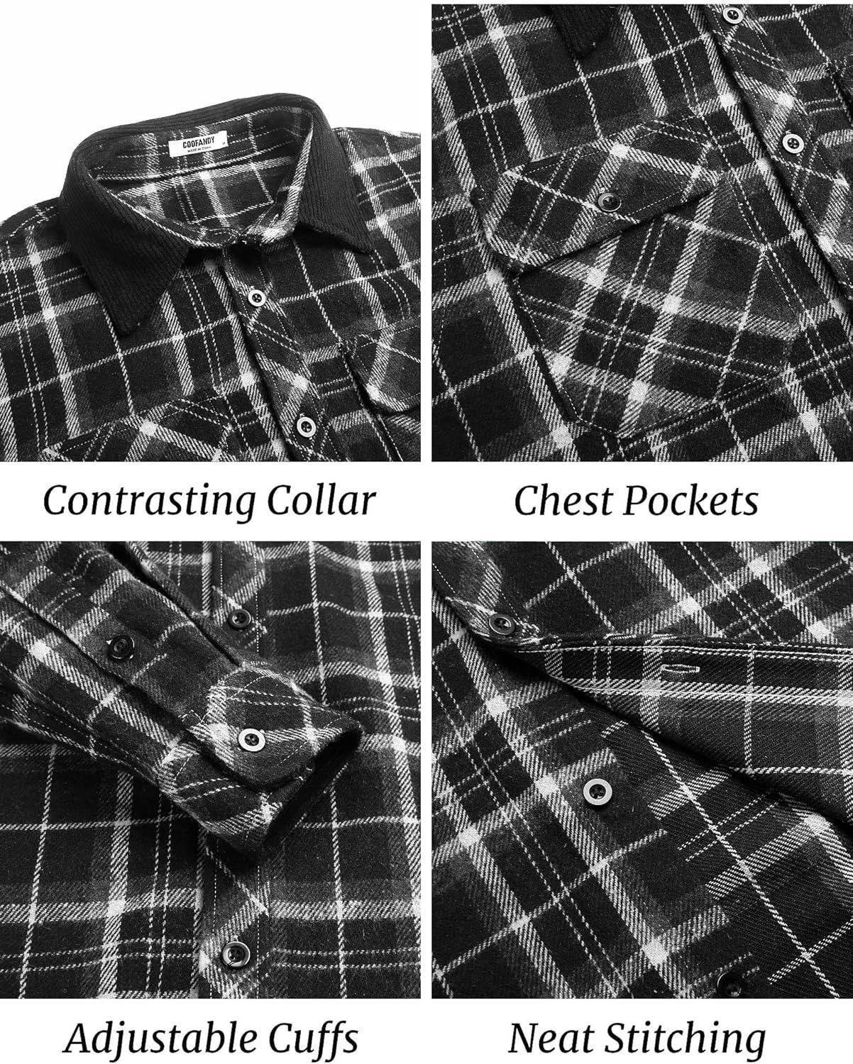 COOFANDY Mens Flannel Shirts Long Sleeve Button Down Shirt with Pocket Casual Shirts Work Shirts for Men