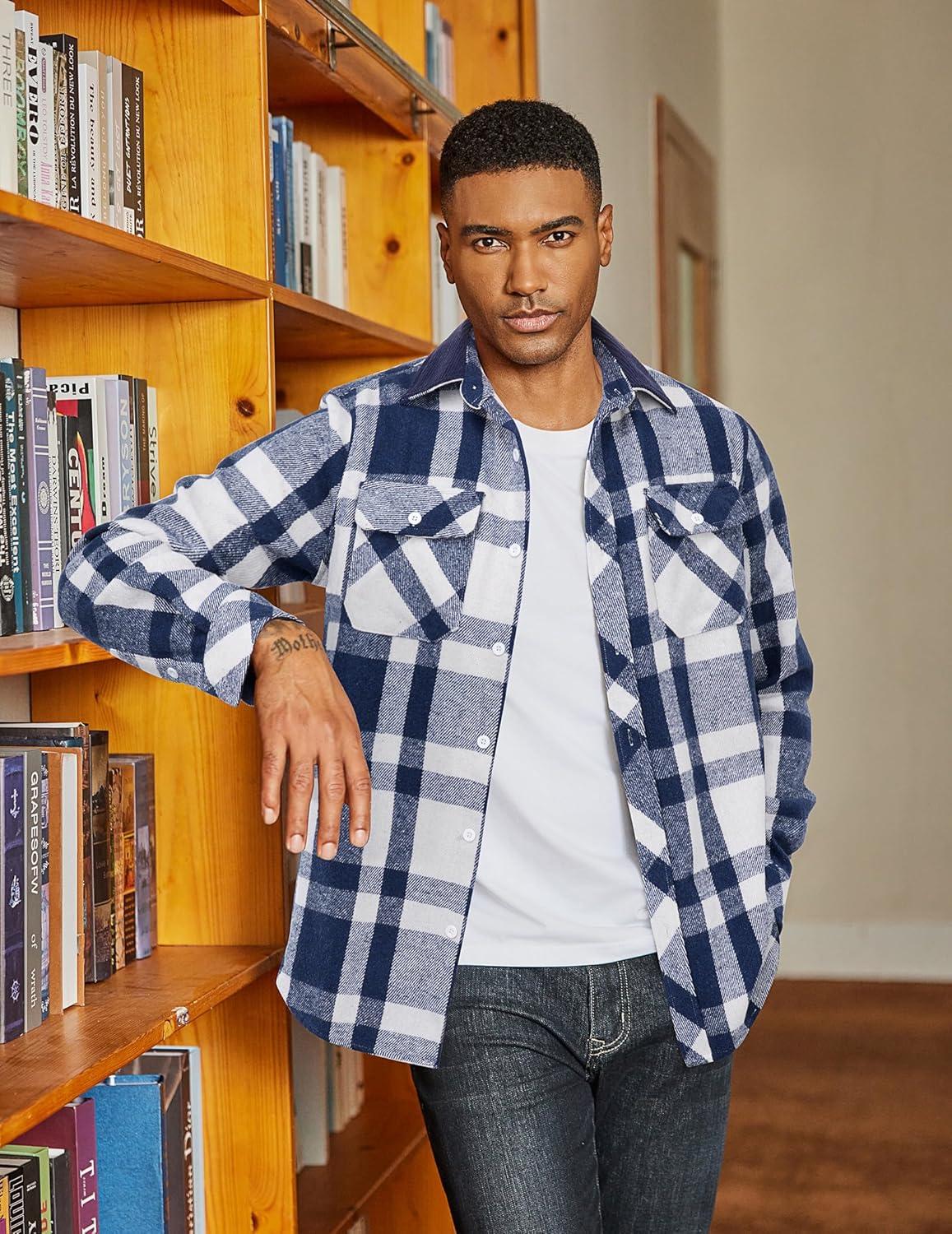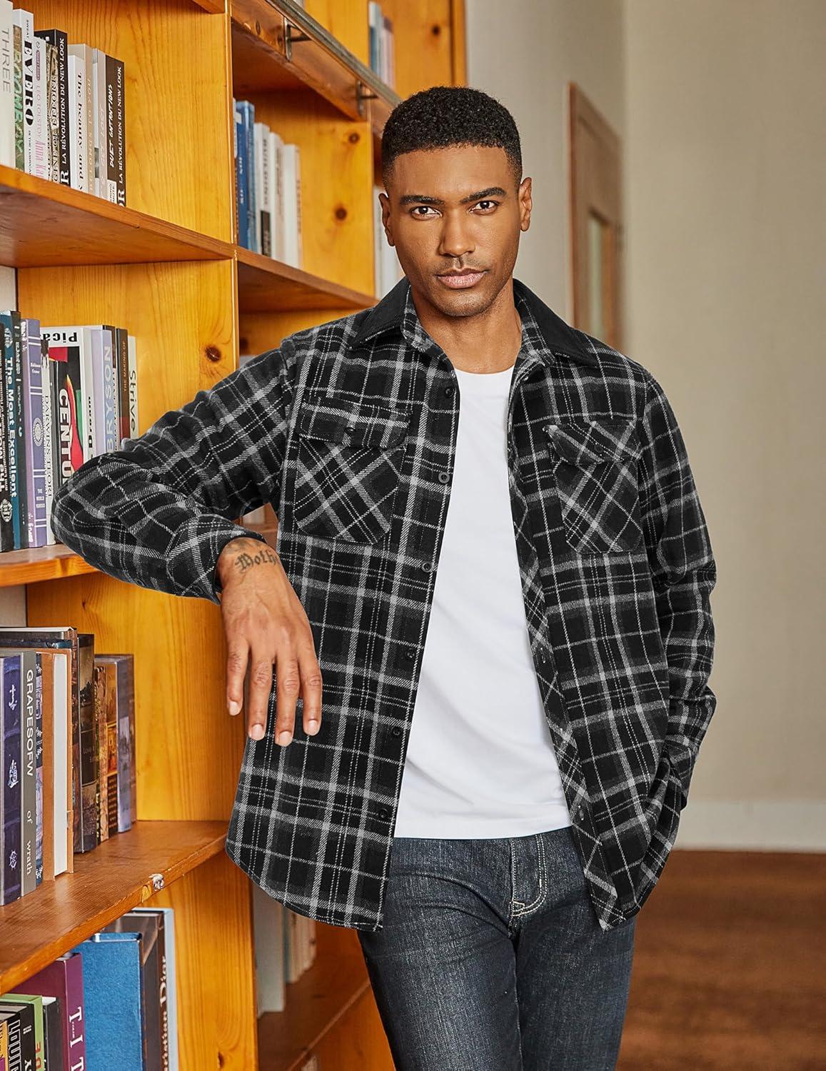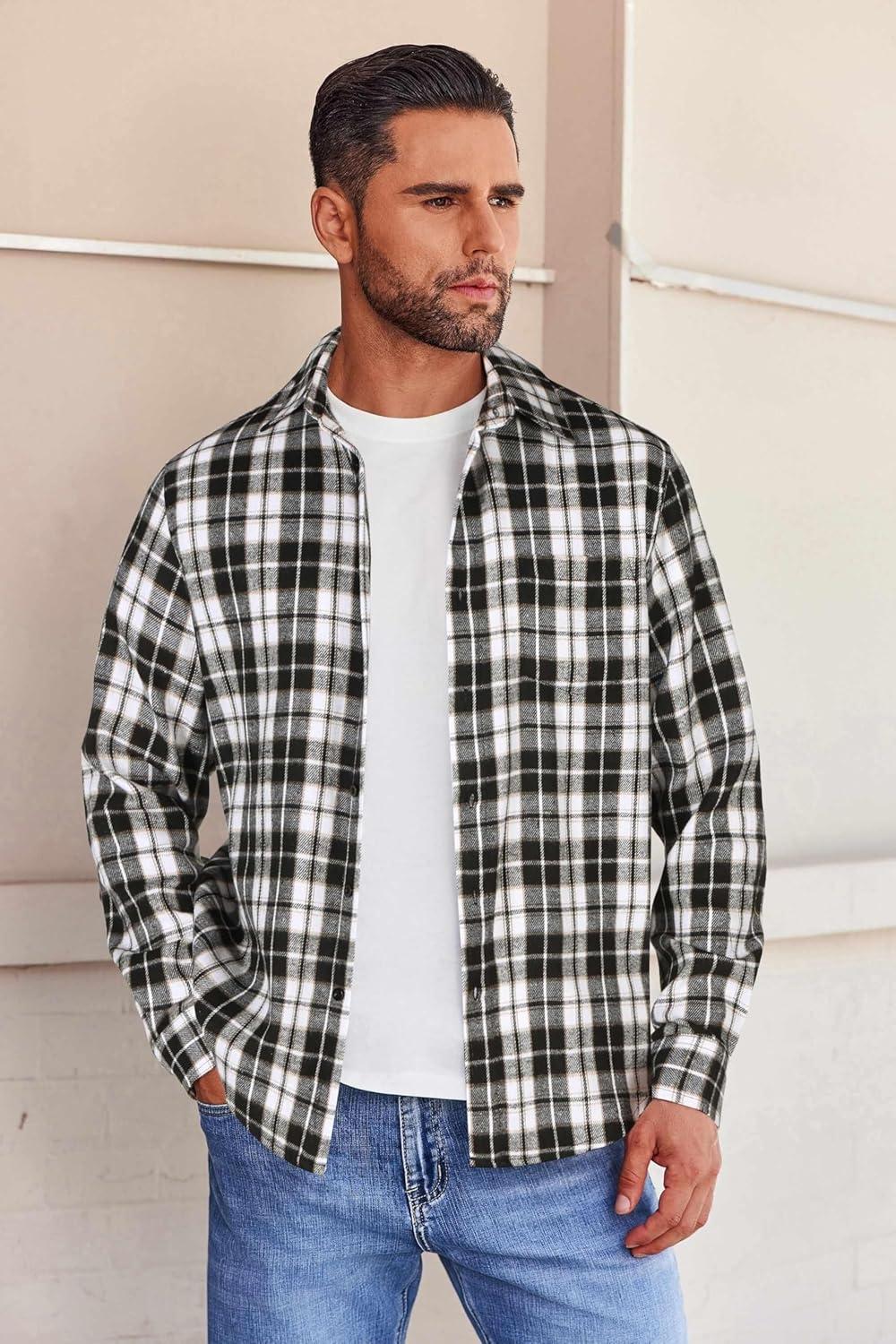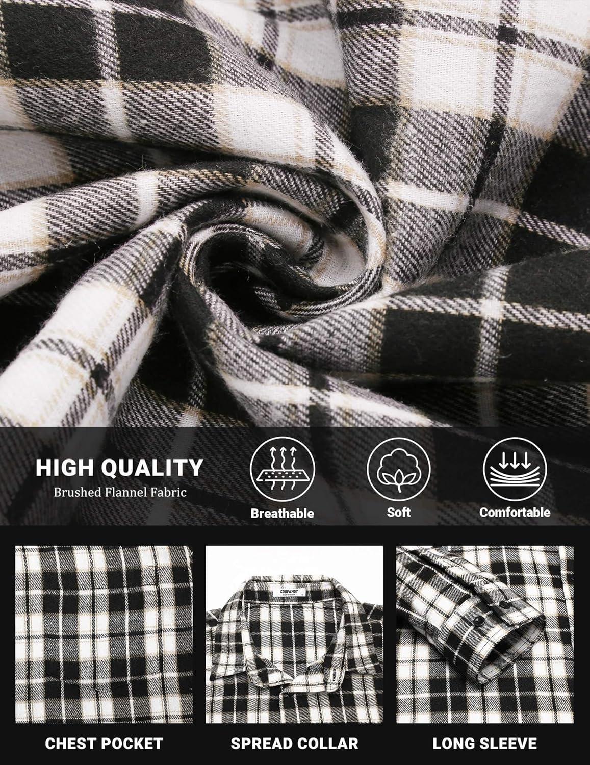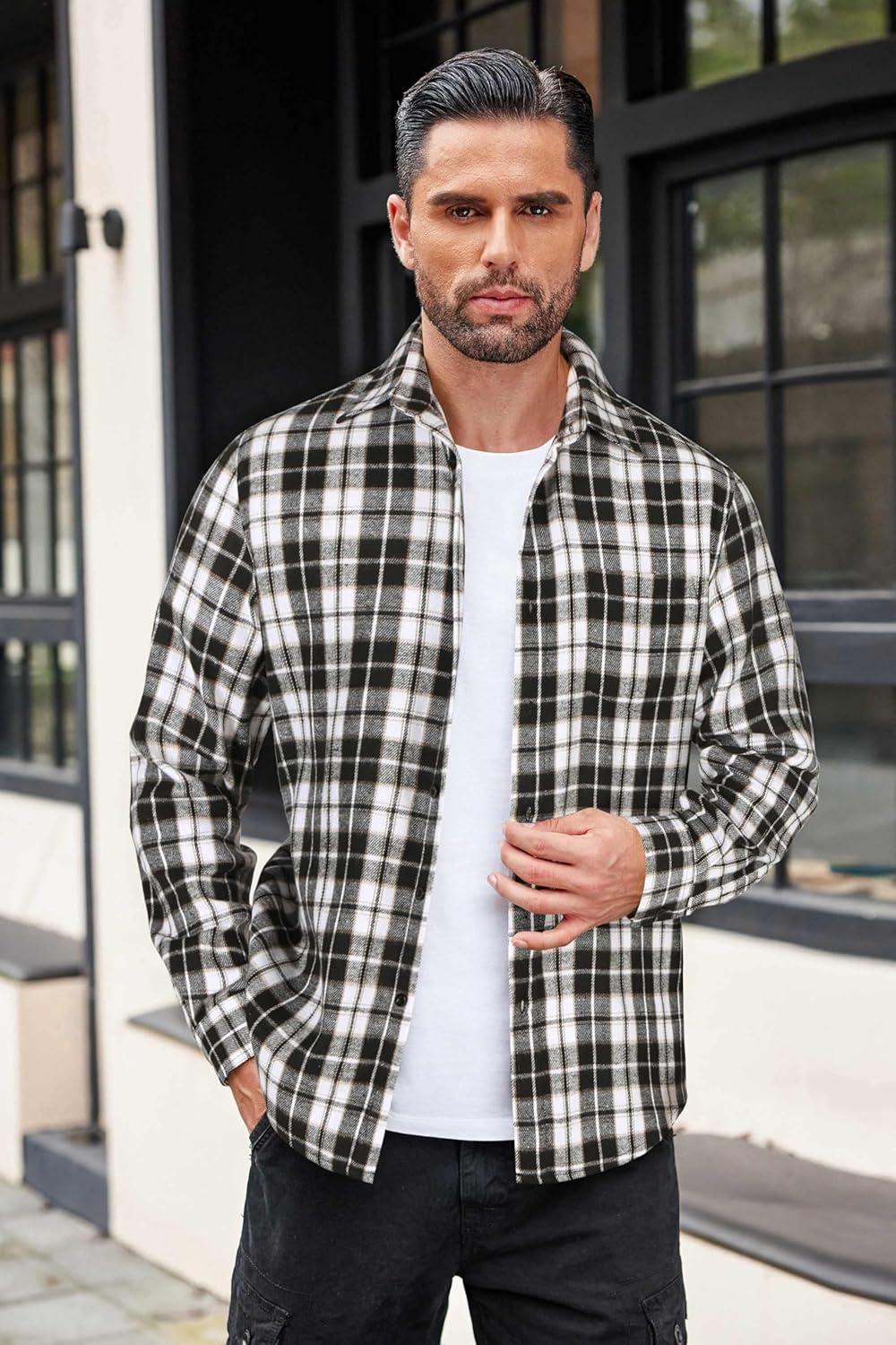 COOFANDY Flannel Shirt for Men Lightweight Button Down Shirts Long Sleeve Cotton Plaid Shirt