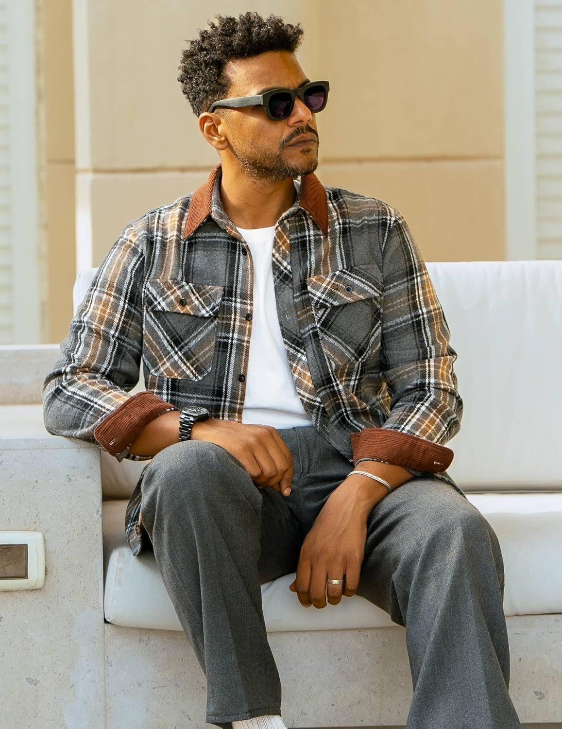 COOFANDY Mens Flannel Shirts Long Sleeve Fleece Plaid Jacket Casual Stylish Button Down Shirts with Pockets(Grey)