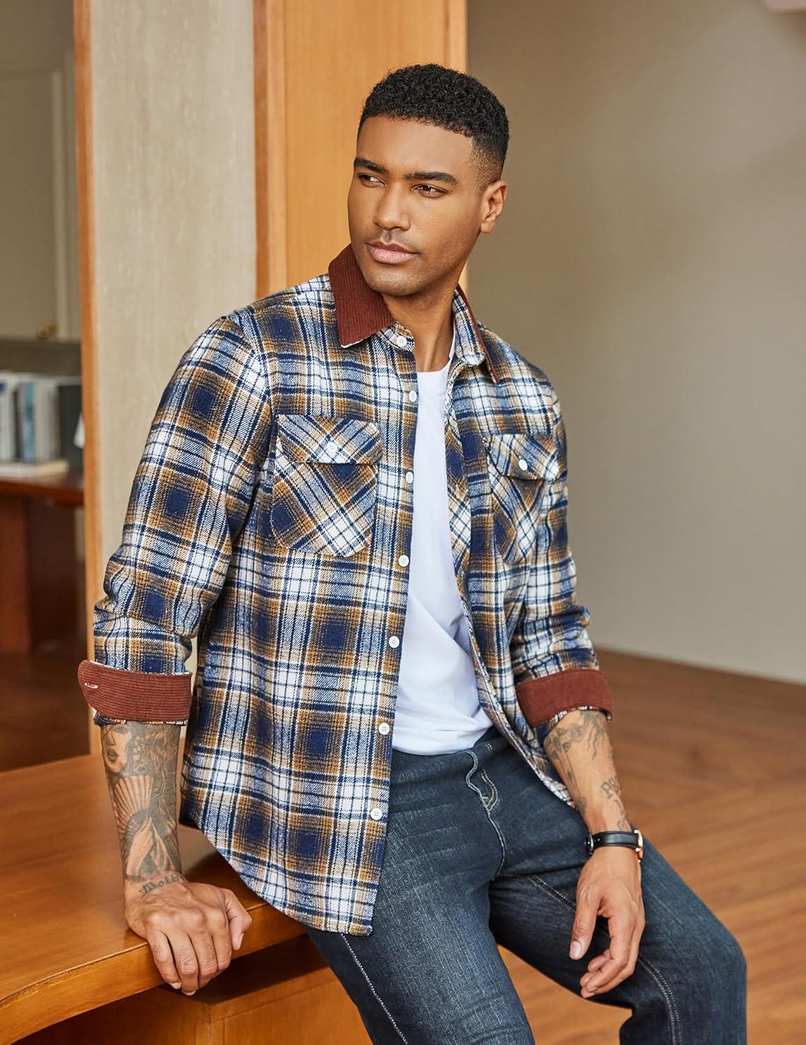 COOFANDY Mens Flannel Shirts Long Sleeve Lightweight Plaid Shirt Casual Button Down Shirts Jacket(Blue Plaid)