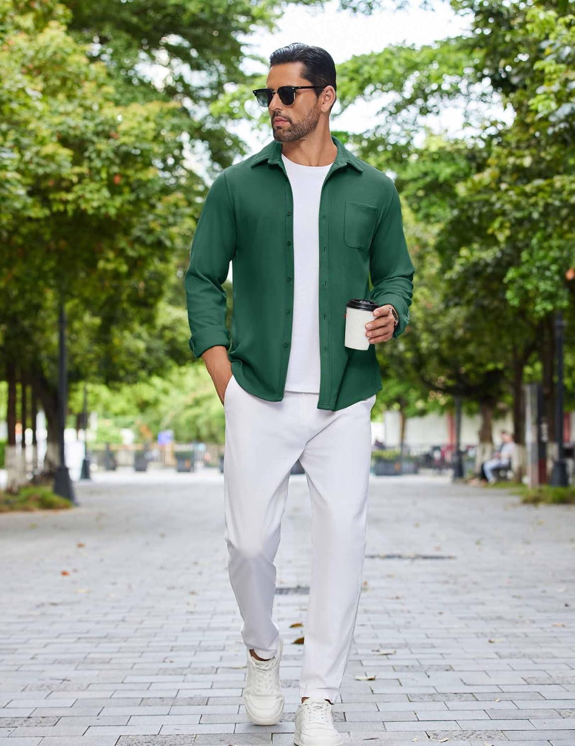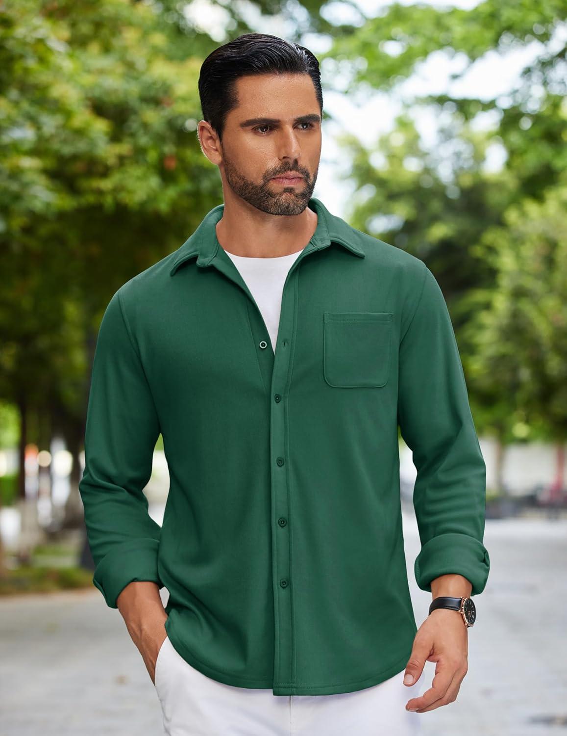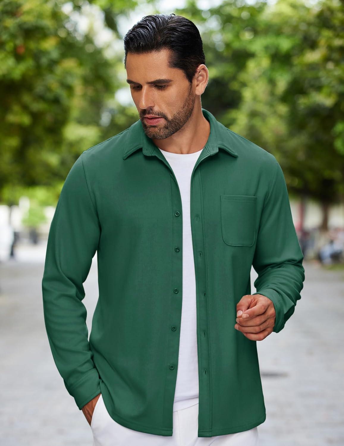 COOFANDY Mens Flannel Shirts Long Sleeve Thermal Button Down Shirt Shacket Lightweight Jacket(Green)